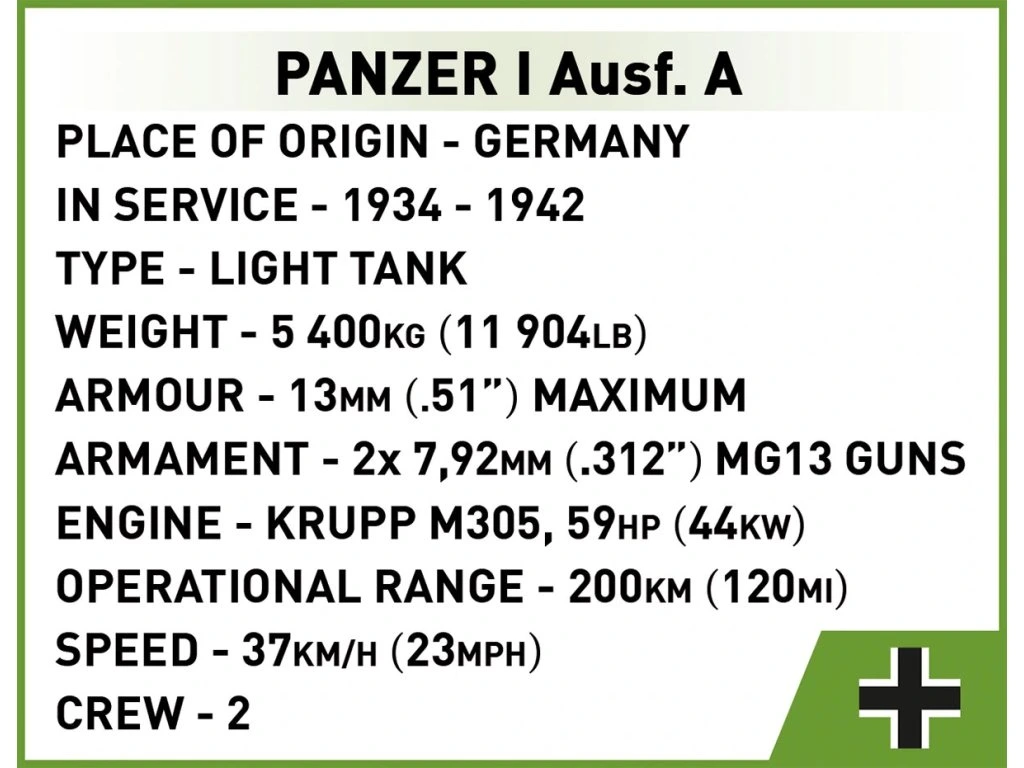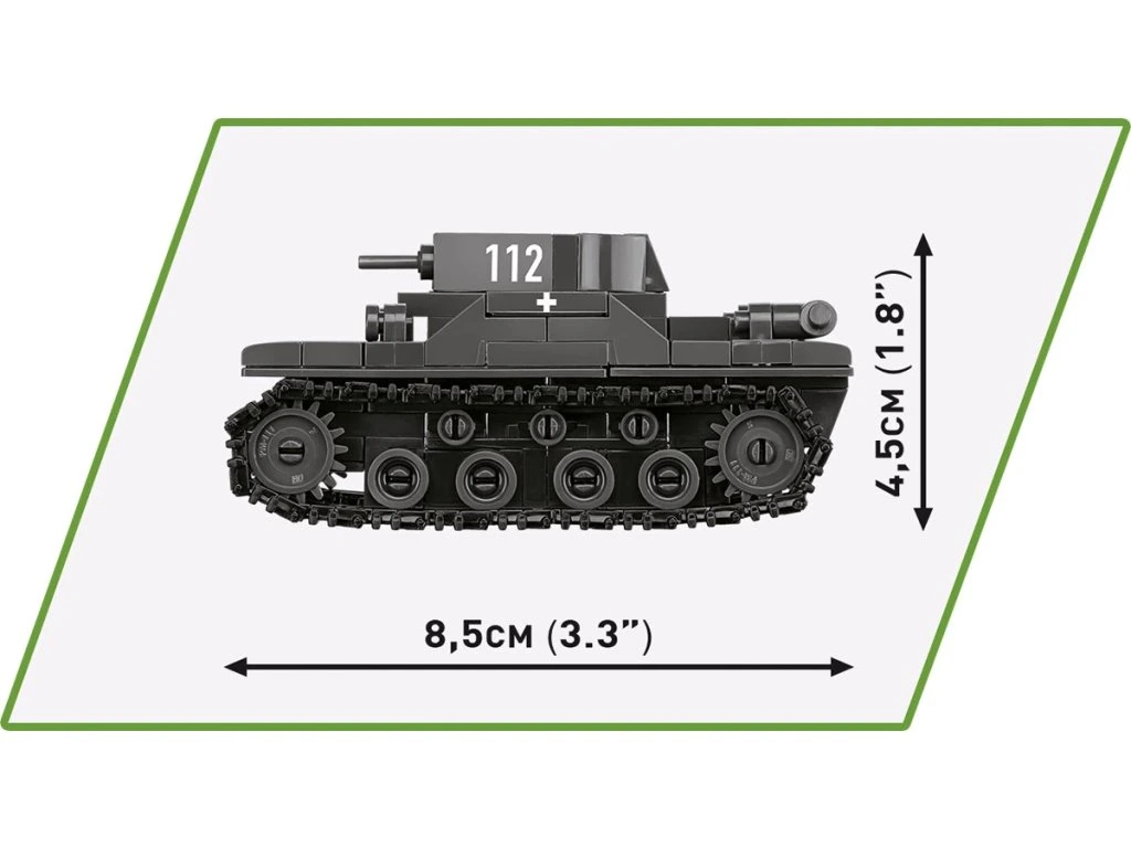 - Panzer I: Délka 8,5 cm × Výška 4,5 cm