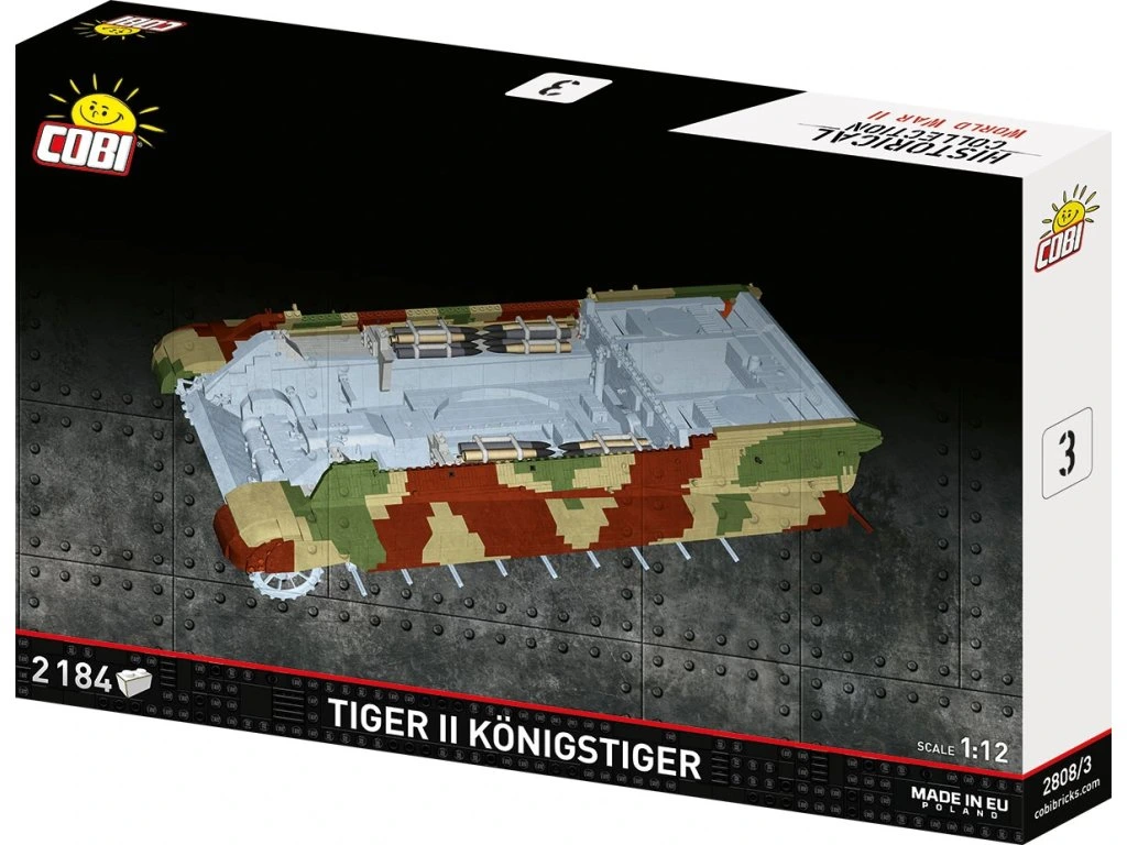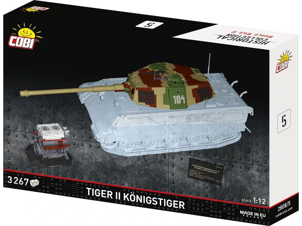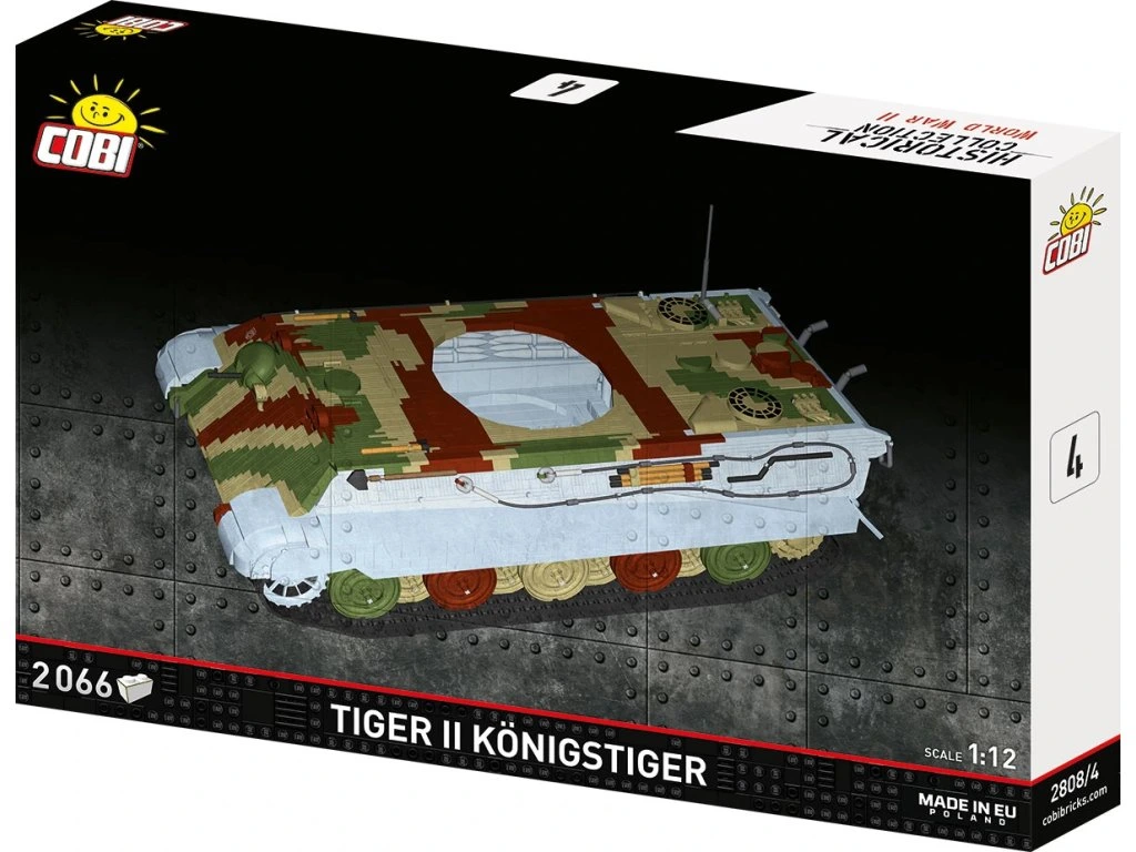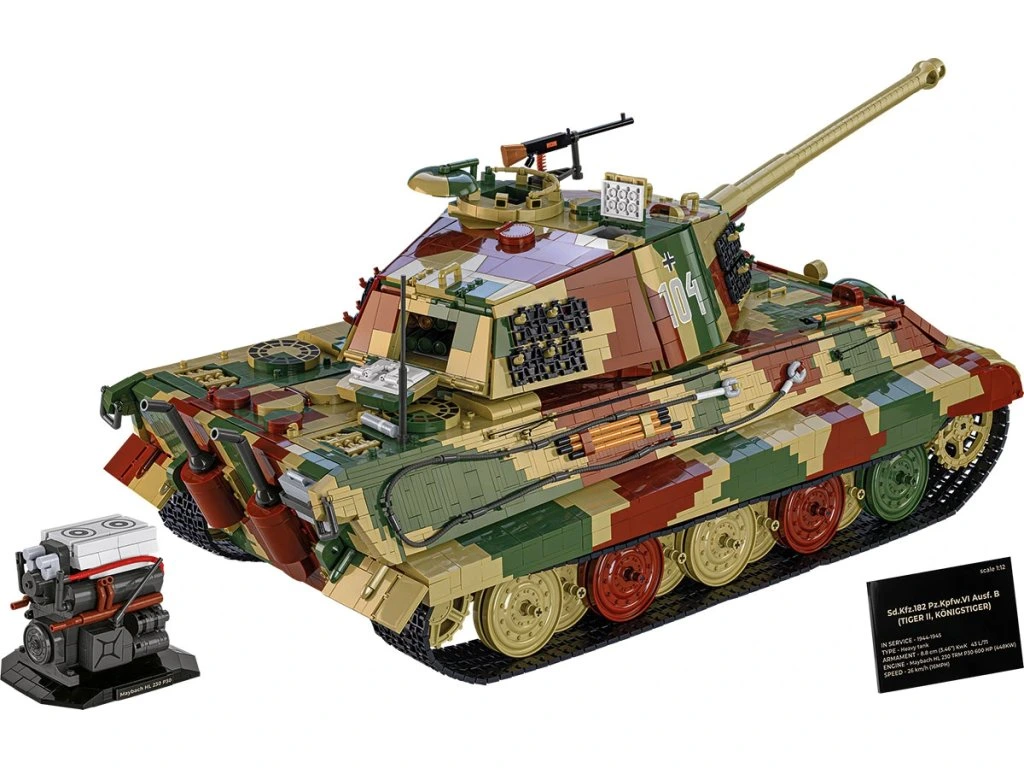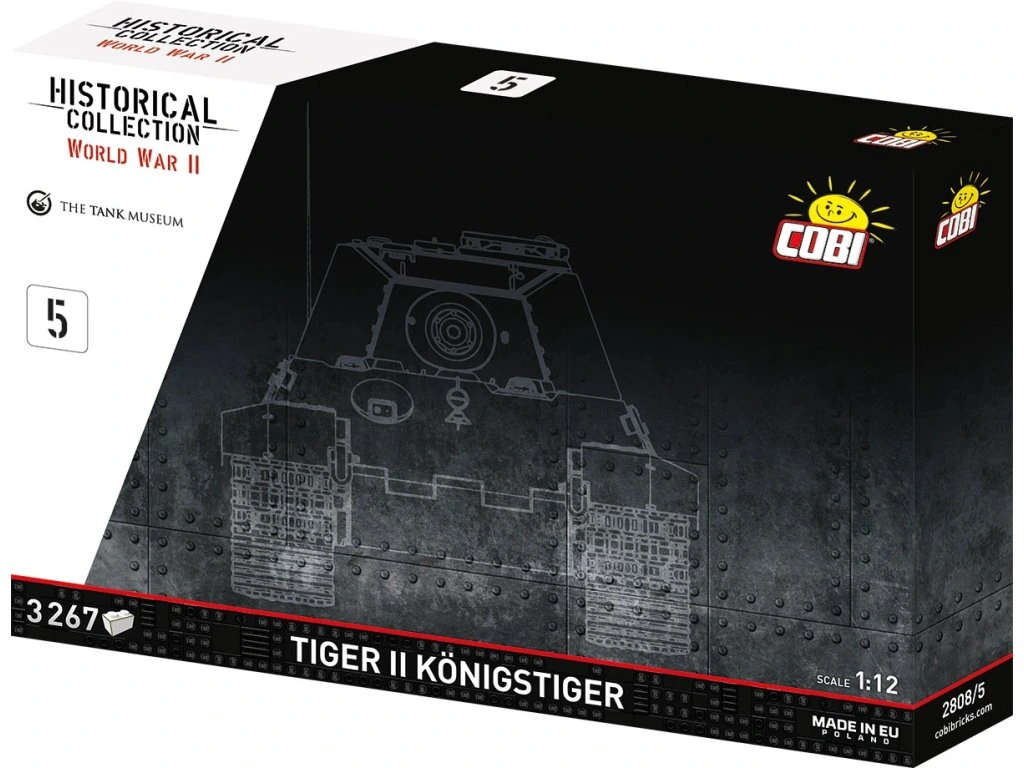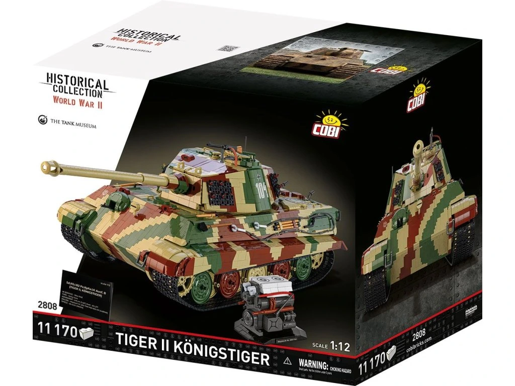 Královský tygr jako žádný jiný – gigantický model COBI Tiger II v měřítku 1:12! Vstupte do světa velkolepé historie a stavění s nejvýkonnějším modelem, jaký kdy COBI vytvořilo – kolos s více než 11 000 dílky, působivá replika legendárního tanku Tiger II.