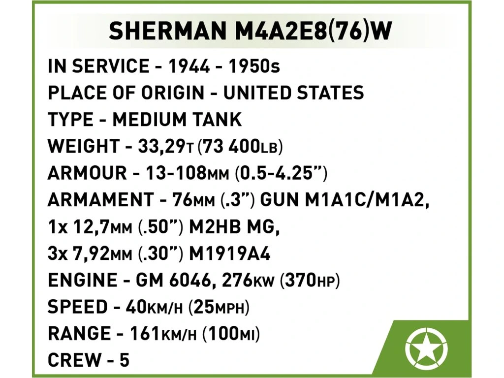 Cobi 3118 II WW Sherman M4A2E8(76)W, 1:35, 865 k, 5 f