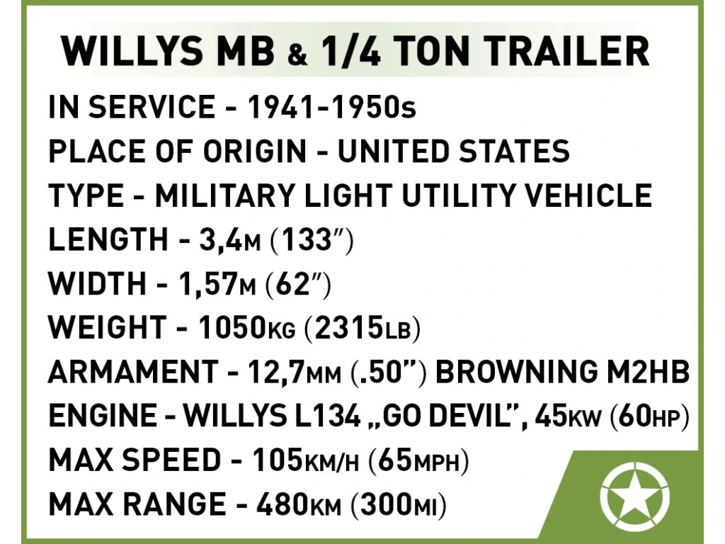 Cobi 3132 II WW Willys MB s přívěsem, 1:35, 200 k, 2 f