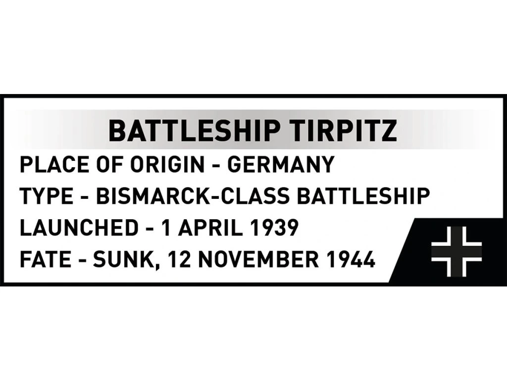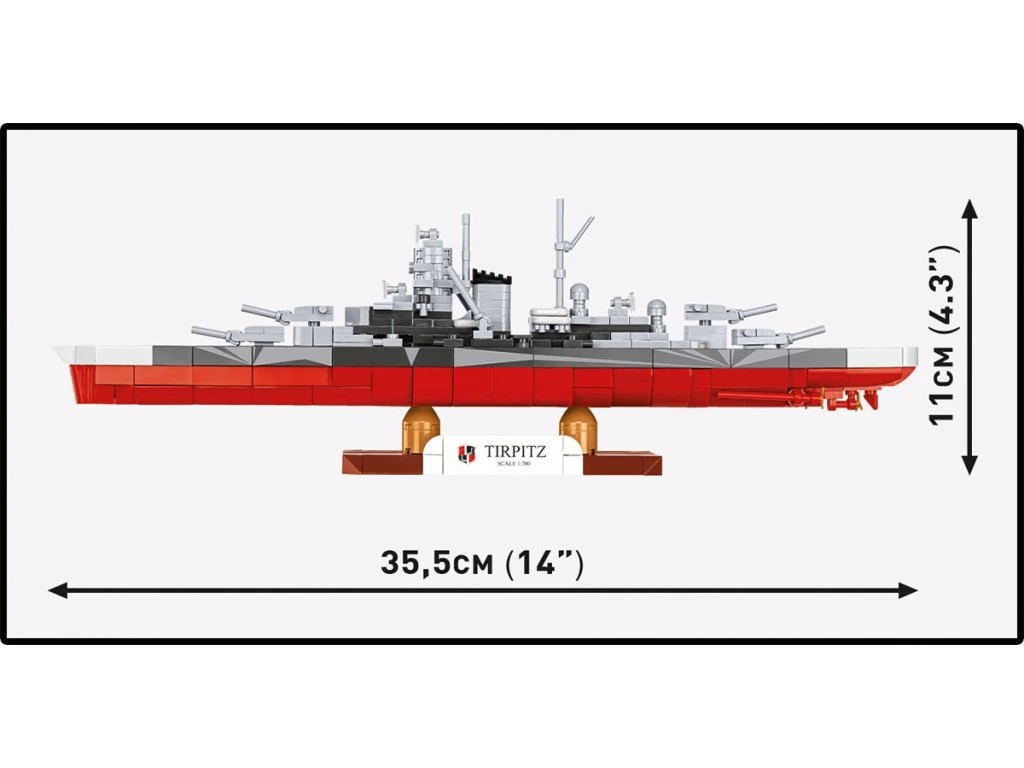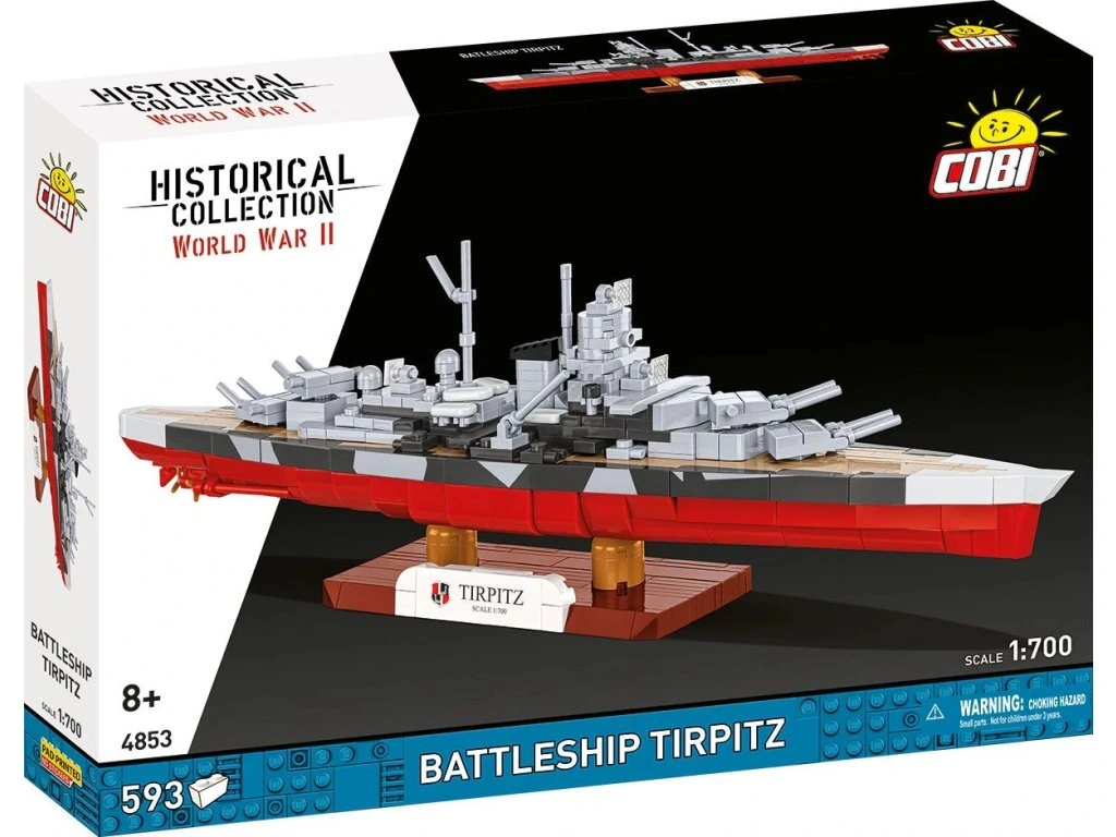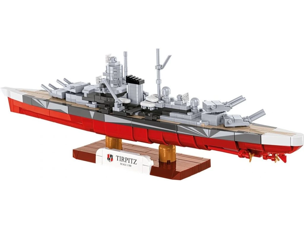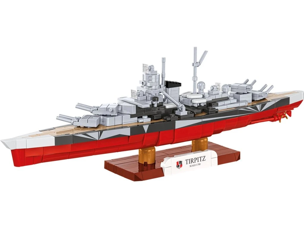 Objevte sílu německé flotily a postavte si bojovou loď Tirpitz v měřítku 1:700, jednu z nejznámějších válečných lodí 2. světové války. Sada s 593 dílky je ideální pro každého, kdo se zajímá o historii, modelářství a militarismus. Modely Tirpitz a Bismarck navazují na modelovou řadu COBI v měřítku 1:700 – posbírejte je všechny a uvidíte, jak se přesnost snouží s kompaktní velikostí.
