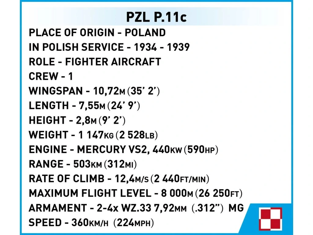 Cobi 5742 II WW PZL P.11c, 1:32, 320 k, 1 f