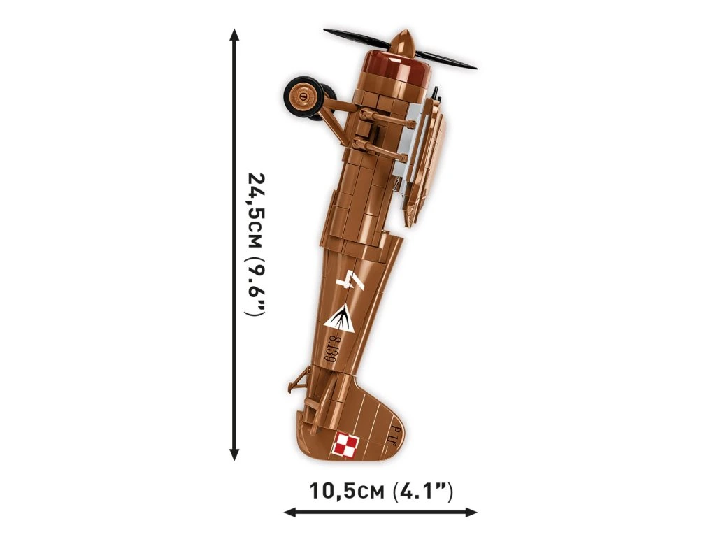 Detailně zpracovaný model letadla má délku 24,5 cm a rozpětí křídel až 34 cm. Díky realistickému provedení a funkčním prvkům jde o atraktivní model pro fanoušky historického letectví i sběratele stavebnic.