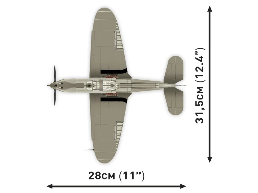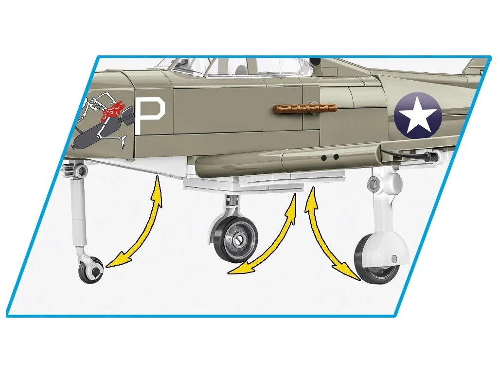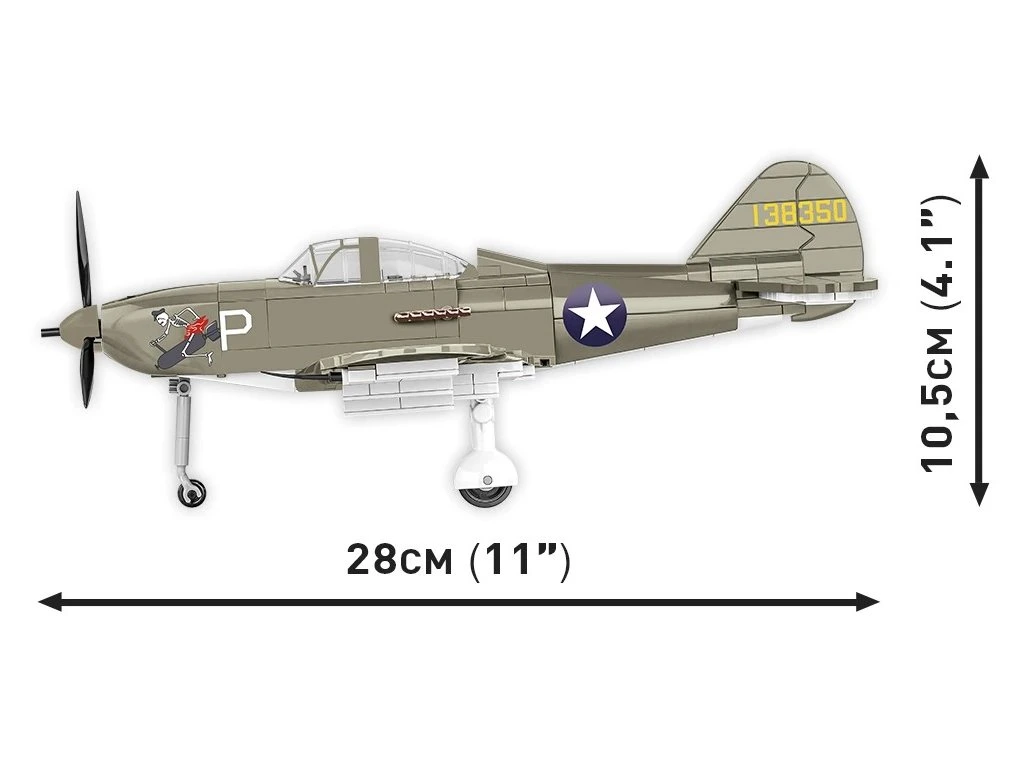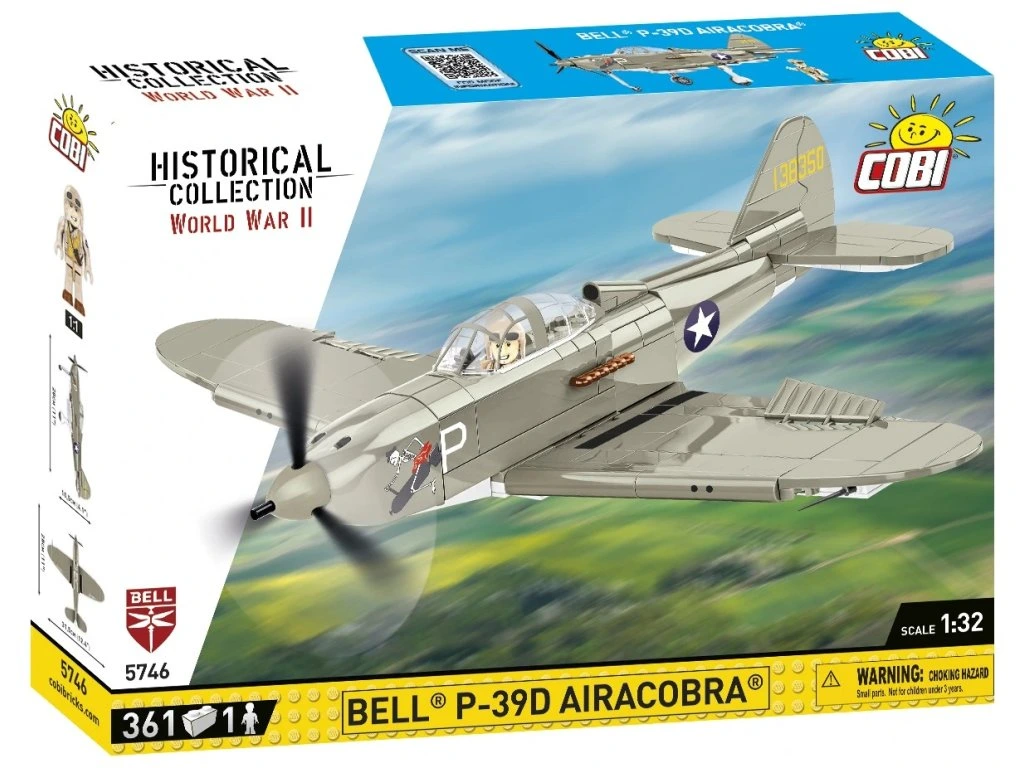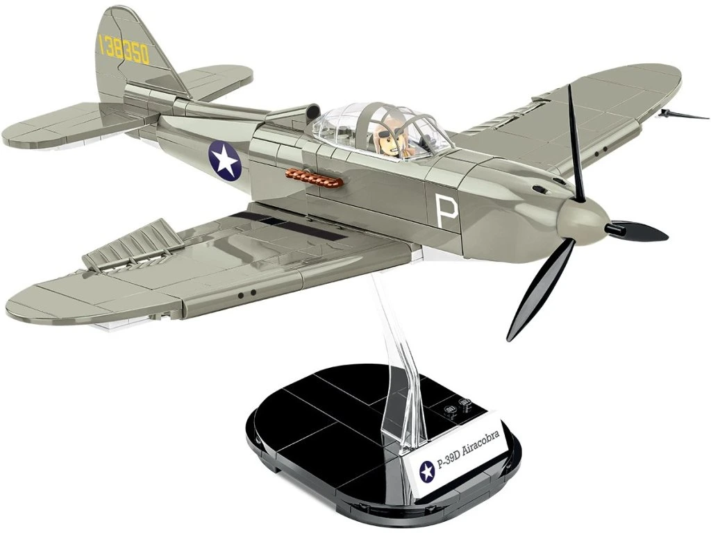 Letoun BELL® P-39D AIRACOBRA® byl navržen ze 361 kostek stavebnice COBI v měřítku 1:32. Náš model nabízí množství pohyblivých prvků, jako je otočná vrtule, pohyblivá křidélka a kola s gumovými pneumatikami, která lze sklopit do vodorovné polohy.
