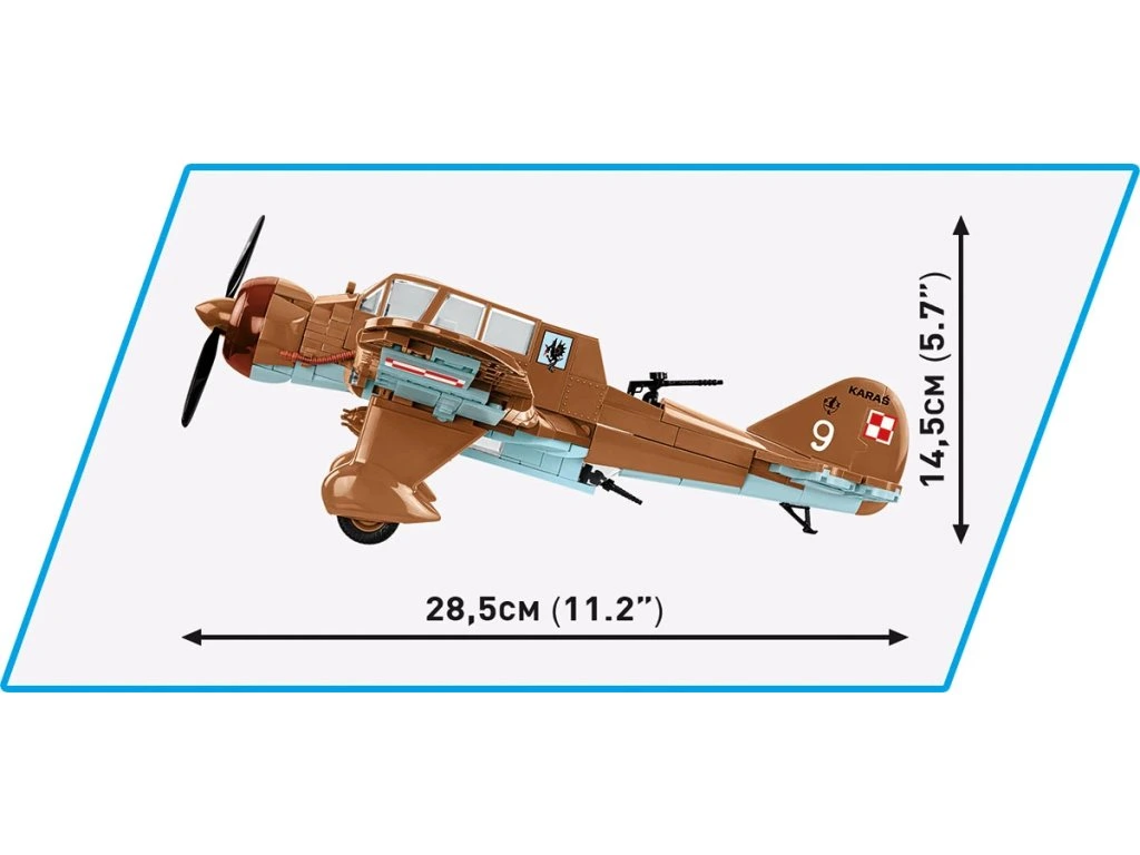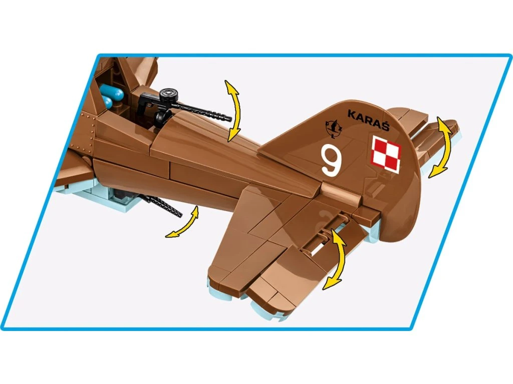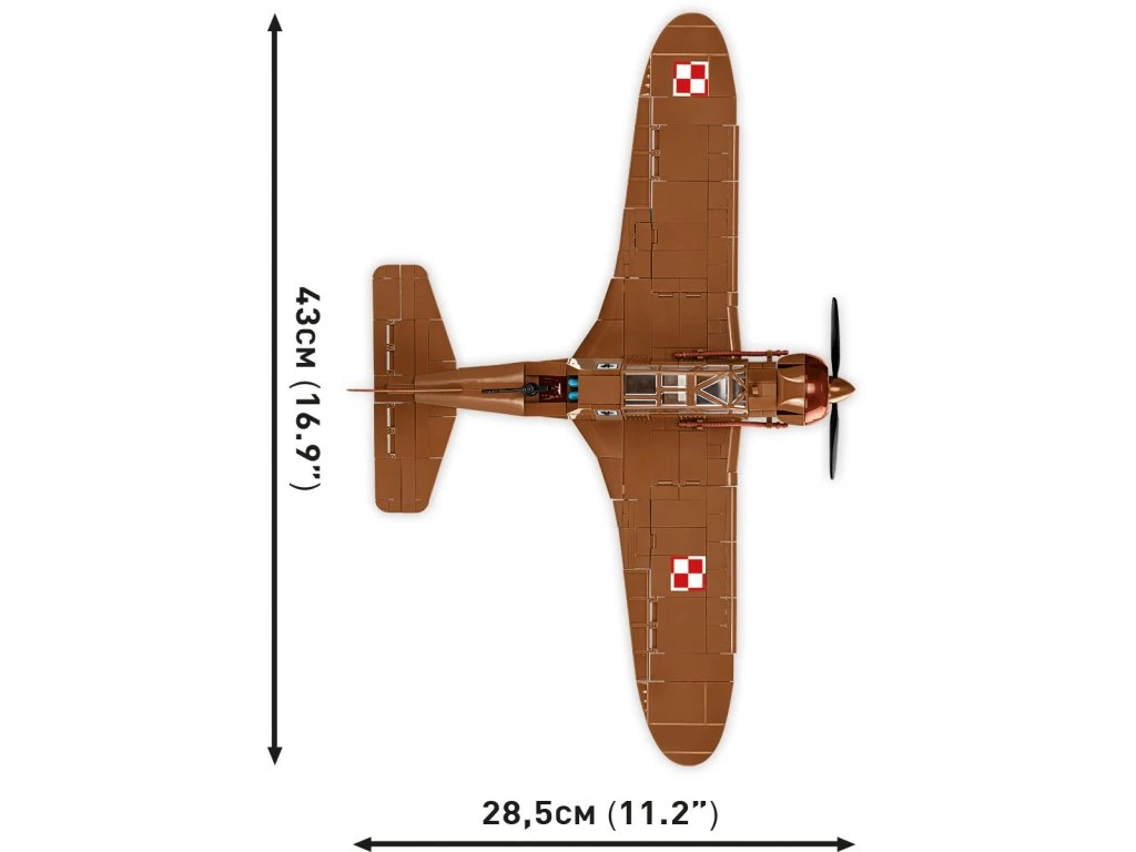Legenda polské oblohy z roku 1939 byla přesně reprodukována ze stavebnice COBI. Detailní model je navržen v měřítku 1:32, které odpovídá dalším letadlům z kolekce Historical Collection. Pro tento model byla vytvořena úplně nová kostka ve formě charakteristického krytu kokpitu, která pojme tři figurky posádky.