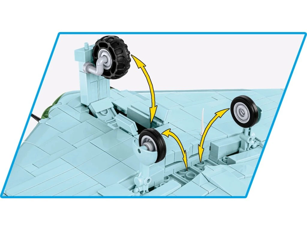 - Pohyblivé části: otvírací kokpit s potištěnými budíky, sklopná kola replikují mechanismy letadla.