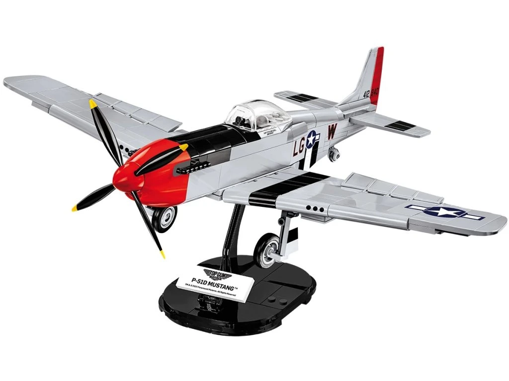 Postavte si model P-51D Mustang z filmu Top Gun Maverick. Model je v měřítku 1:32 a má rozměry 31 x 13 cm, rozpětí křídel je 35 cm. Model si můžete vystavit na stojan, který si také postavíte ze stavebnice. Do kokpitu je možné umístit figurku pilota, kterým ve filmu není nikdo jiný než Tom Cruise. Balení obsahuje 350 kostek stavebnice a 1 figurku pilota.