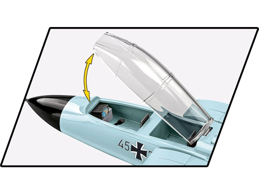 - Otevírací kokpit a figurky pilotů: Model má otevírací kokpit se dvěma figurkami pilotů v uniformách, s přilbami a kyslíkovými maskami.
