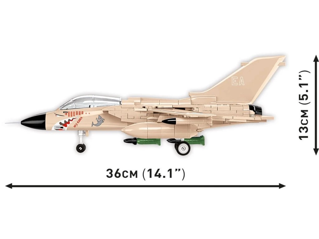 S využitím 527 vysoce kvalitních kostiček stavebnice COBI můžete postavit slavnou britskou víceúčelovou stíhačku Panavia Tornado s její mimořádnou historií! Zjistěte, jak si vysloužila své jméno „MIG EATER" (Migožrout). Model byl pečlivě navržen v modelářském měřítku 1:48 a doplňuje bohatou kolekci stíhaček Ozbrojených sil (Armed Forces). Model obsahuje pouze vysoce kvalitní potisky, samolepky nejsou součástí sady. Barevné provedení a charakteristické označení odkazují na válku v Perském zálivu (1990–1991).