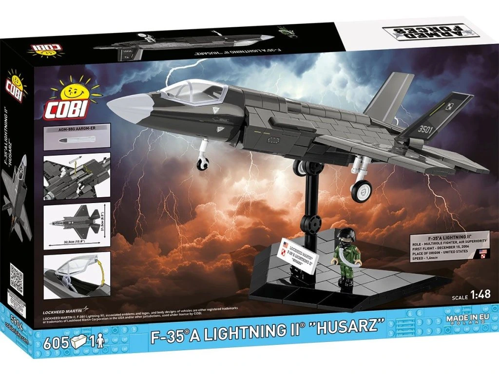 F-35A Lightning II "Husarz" je unikátní stavebnice od COBI, která vám umožňuje sestavit model stíhačky páté generace – jednoho z nejlepších strojů ve vzduchu, který se brzy přidá k polskému letectvu.