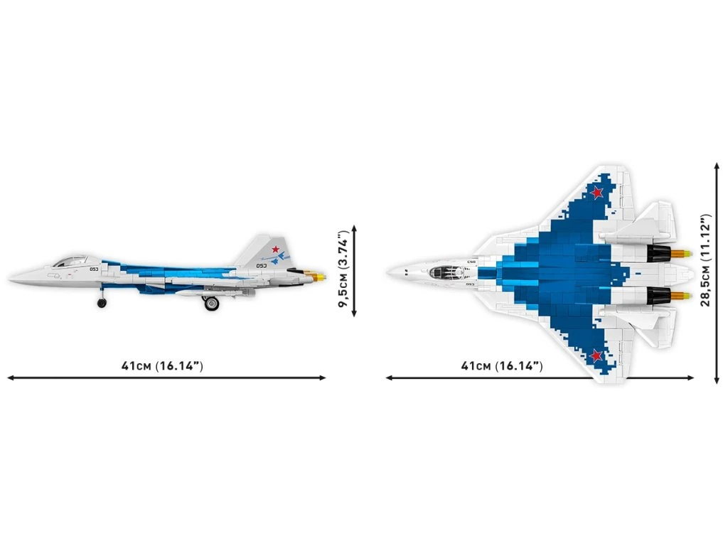 - 928 dílků – umožňuje sestavit přesně reprodukovaný model SU-57 s barevným schématem digitální kamufláže.