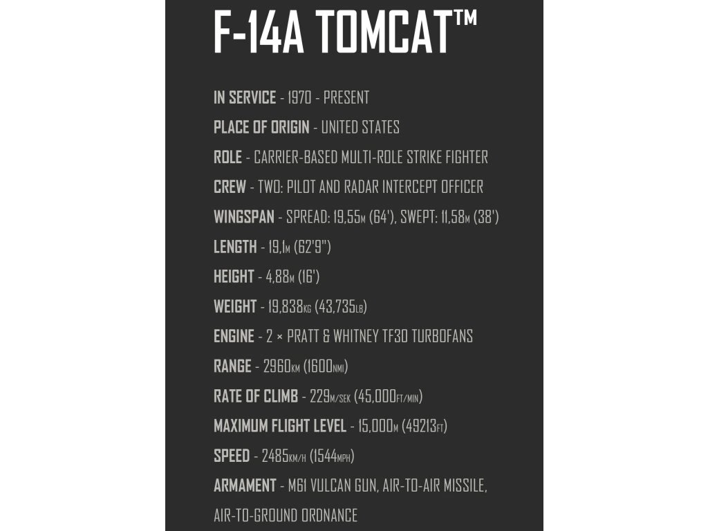 Postavte si vlastní F-14 Tomcat, zažijte atmosféru filmových soubojů a přeneste si kousek legendy Top Gun přímo k sobě domů.