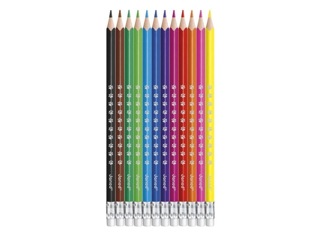 - 12 barevných pastelek s gumou.