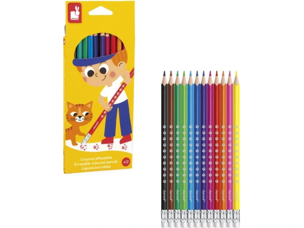 Sada 12 pastelek s gumou Janod – kolekce Colo (3+)Exploze barev! Tato sada 12 pastelek s gumou je ideální pro děti od 3 let a umožňuje oživit kresby a rozvíjet kreativitu. Pastelky nabízejí zářivou paletu barev a jejich odolná tuha zajišťuje dlouhou životnost, zatímco trojúhelníkový tvar umožňuje pohodlné a správné držení.
