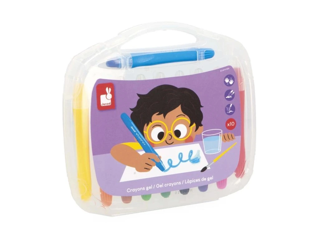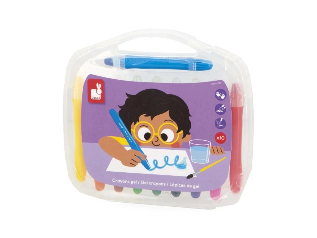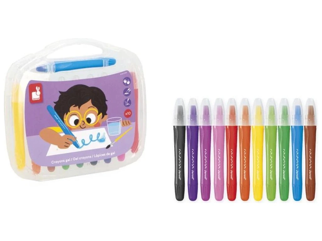 Sada 10 gelových tužek Janod – kolekce Colo (3+)Gelové tužky pro hladký zážitek z kreslení! Tato sada 10 gelových tužek je vhodná pro děti od 3 let a nabízí výjimečnou kluzkost pro jednoduché a beznamáhové kreslení. Ideální pro malé umělce, kteří rádi tvoří originální a experimentální techniky.