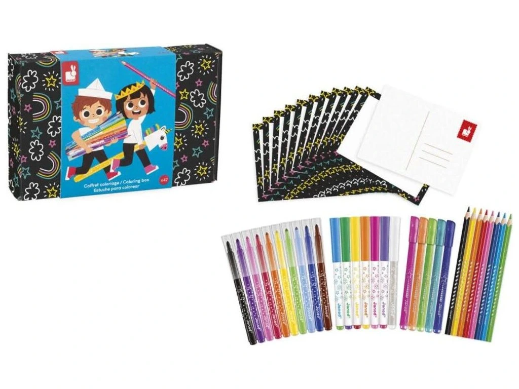 Dětská kreativní sada Janod – kolekce Colo (3+)Tato sada je skvělým nápadem na dárek pro děti od 3 let, které chtějí zažít obohacující a zábavné tvořivé chvíle. Každý prvek sady je navržen tak, aby inspiroval a stimuloval dětskou představivost a podporoval rozvoj jemné motoriky a kreativity.