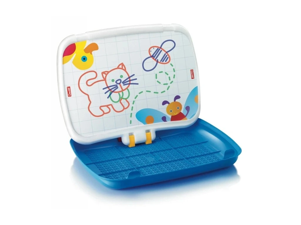 Z druhé strany se nachází velká bílá kreslicí tabule pro fixy, kterou je možné používat za sucha a následně setřít. Jednoduchými, intuitivními pohyby můžete podložku zvednout, sklopit a obrátit na druhou stranu.