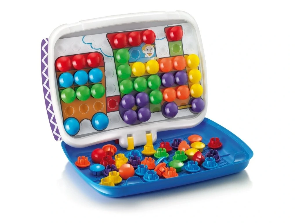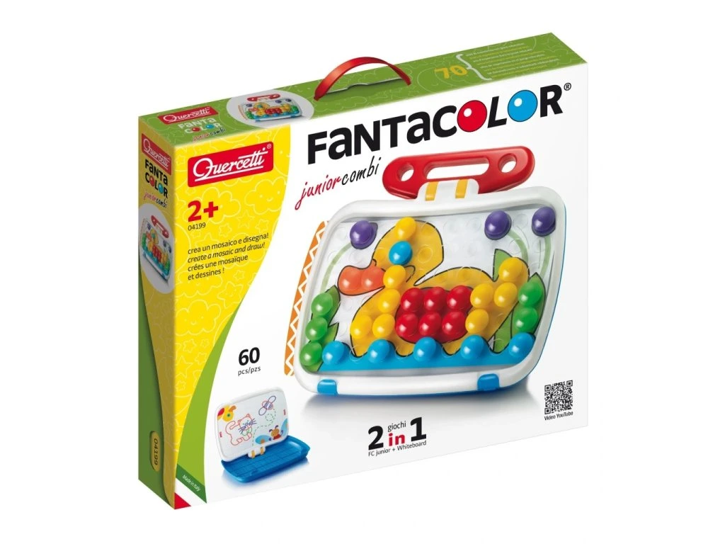 Rozšířený variant mozaik FantaColor Junior přináší dvě hry v jednom velkém multifunkčním kufříku. Z jedné strany je mozaika se šesti oboustrannými předlohami, určená dětem od 2 let, která rozvíjí vizuomotorickou koordinaci, jemnou motoriku a tvořivé myšlení.