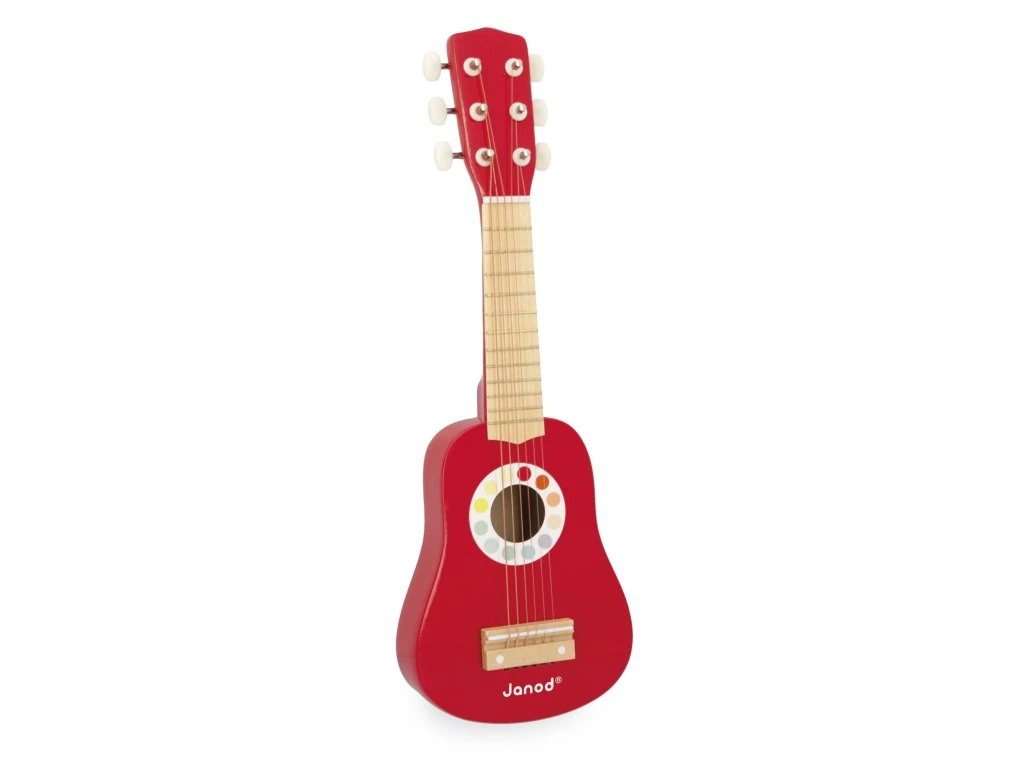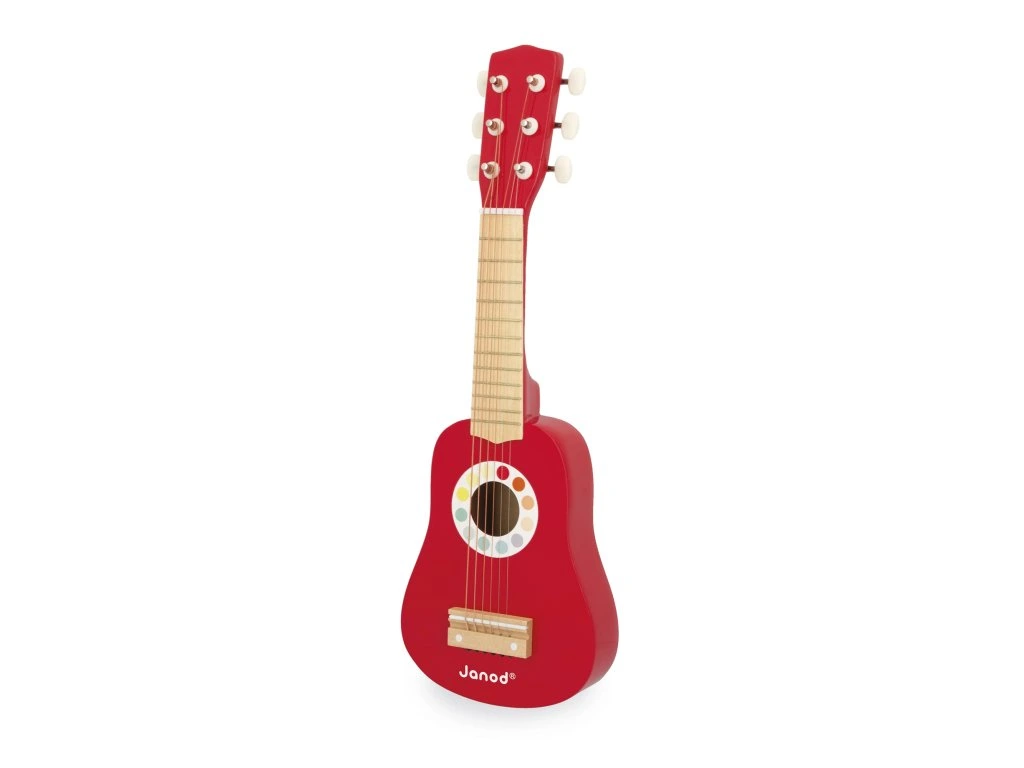 Dřevěná kytara Janod CONFETTI – 6 kovových strunDřevěná první kytara CONFETTI se 6 kovovými strunami je ideální k seznámení nejmenších hudebníků s radostí z hudební improvizace. Barevné pop-n-rock designy řady Confetti probouzejí všechny smysly a podporují hudební kreativitu dětí.