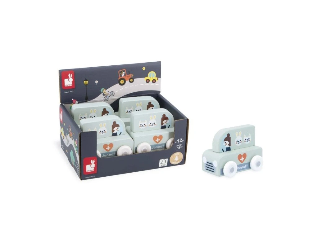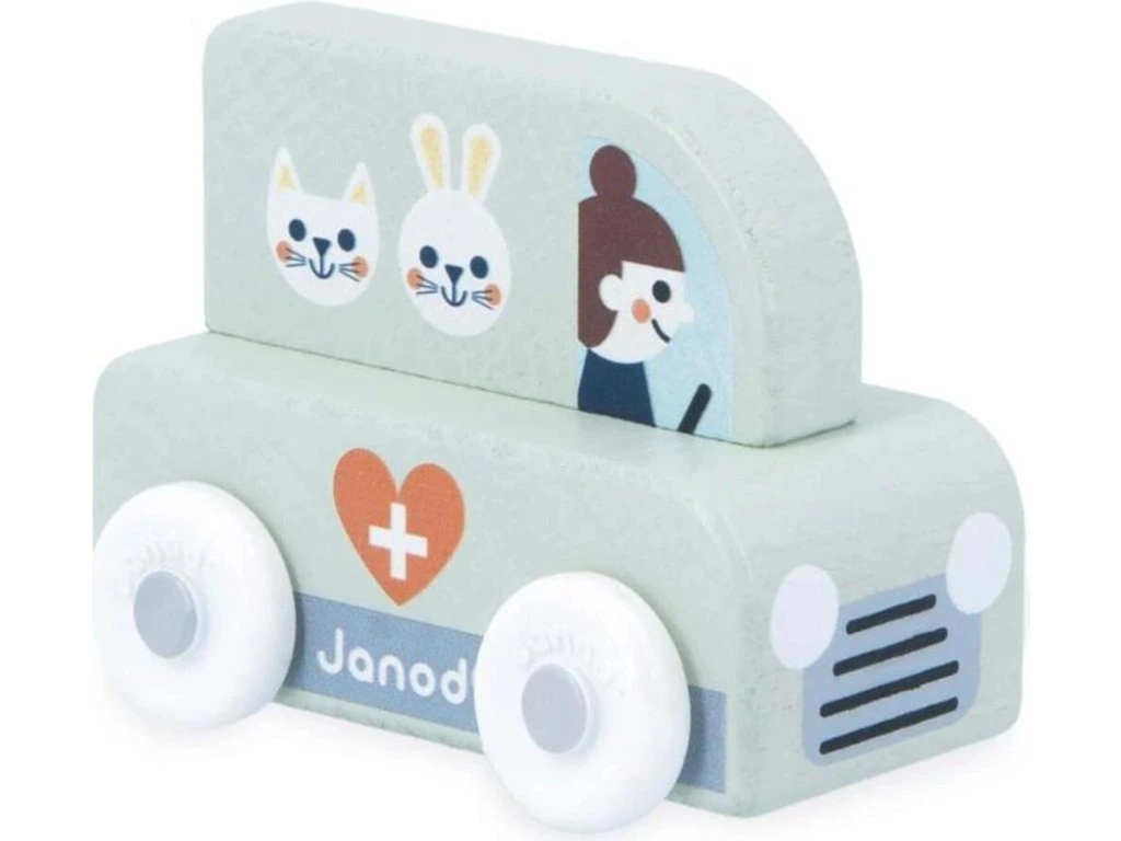 Dřevěný veterinární vozík – JanodPospěš si na farmu! S tímto dřevěným veterinárním vozíkem mohou děti zažít spoustu vzrušujících dobrodružství, když se veterinář pospíchá zachránit zvířata. Díky ergonomickému tvaru se vozík snadno uchopí a kutálí i malýma rukama.