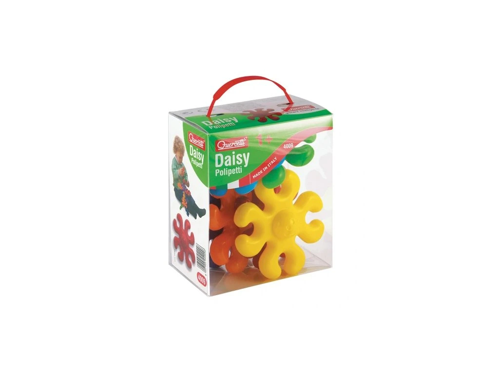 Daisy Polipetti je stavebnice pro nejmenší, která umožňuje dětem spojovat barevné díly do řetězů nebo různých konstrukcí. Tato kreativní hra podporuje rozvoj jemné motoriky, vizuomotorické koordinace, rozlišování barev a tvarů a zároveň posiluje svaly na rukou.Jednotlivé díly jsou omyvatelné, nerozbitelné a vzájemně plně kompatibilní, což zaručuje bezpečnou a dlouhodobou zábavu. Daisy Polipetti je vyrobena z plastů nejvyšší kvality, díky čemuž je ideální volbou pro nejmenší objevitele.