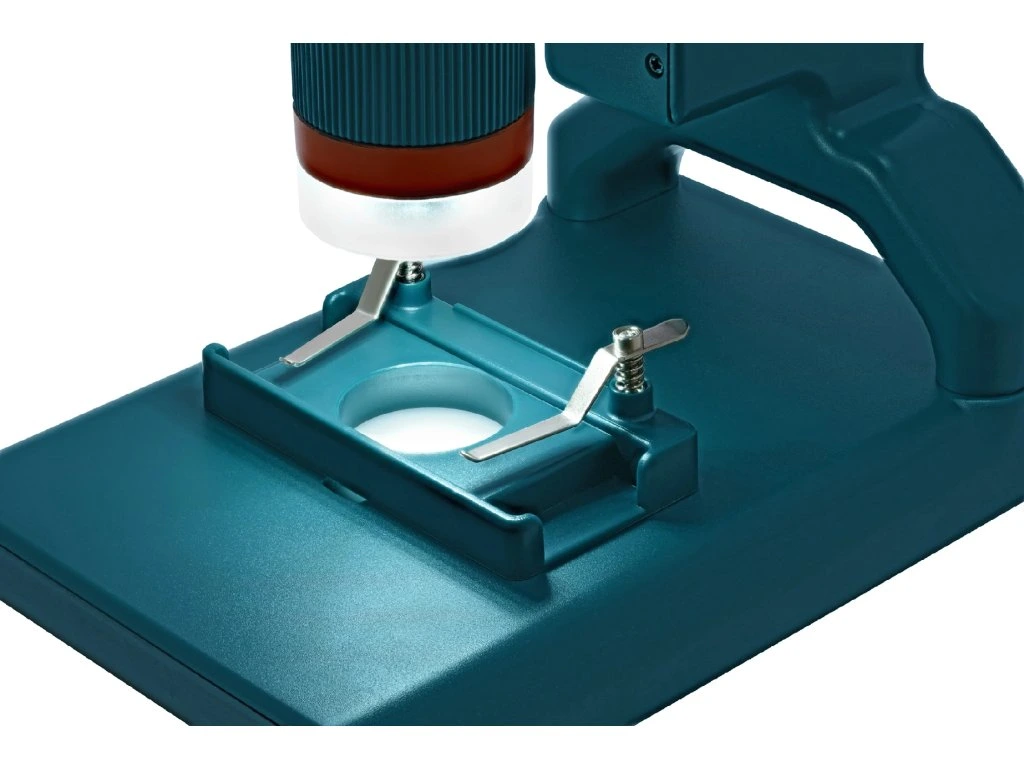 Mikroskop může být napájen vestavěnou baterií, a proto ho lze používat mimo zásuvku.