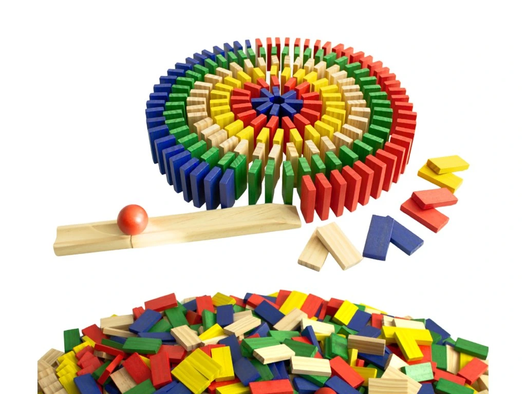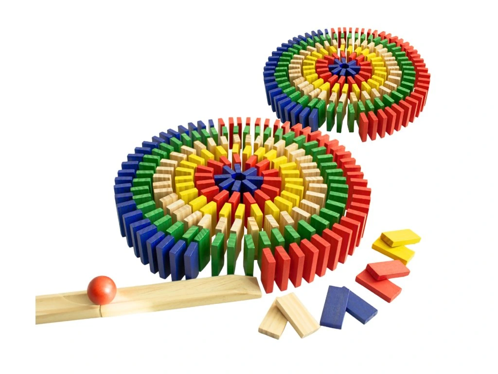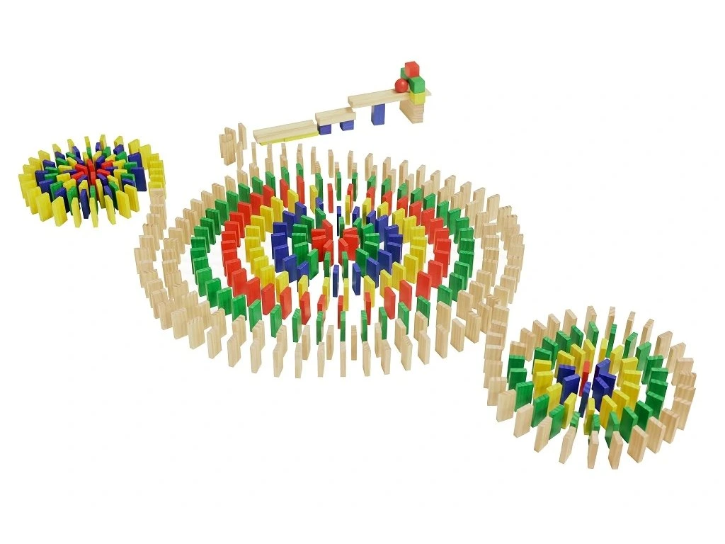 Barevné dřevěné domino s 800 dílky přinese dětem hodiny zábavy, tvoření a objevování. Díky pestrým barvám a kvalitnímu dřevu si děti mohou stavět dlouhé dráhy, spirály i vlastní originální obrazce a následně sledovat úžasný řetězový efekt při jejich shazování.