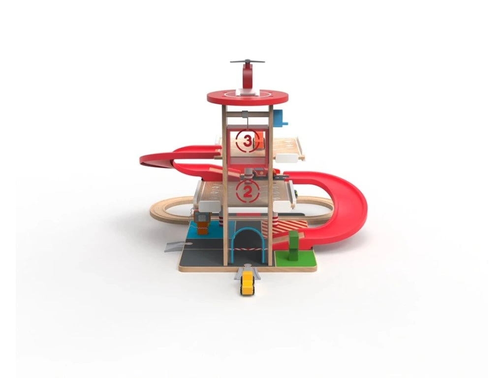 Pokud se stane nehoda, z heliportu na střeše už startuje záchranná helikoptéra. Tato edukační hračka podporuje kreativní a představivou hru a přirozeně rozvíjí koordinaci ruka-oko, jemnou motoriku i zručnost.