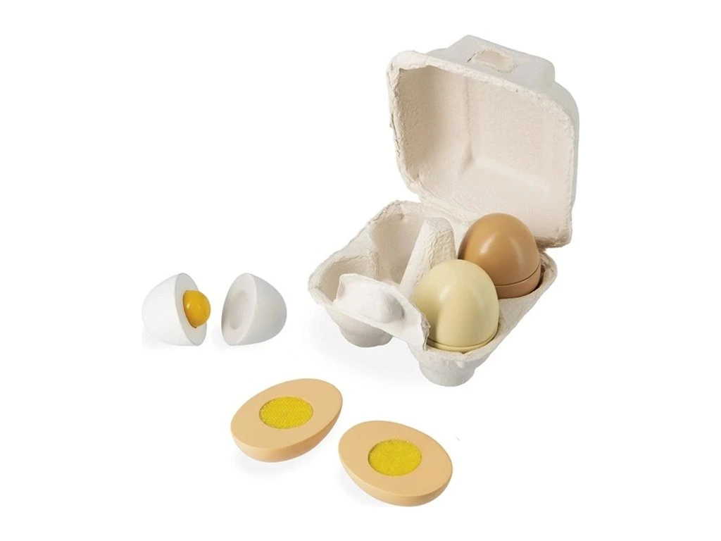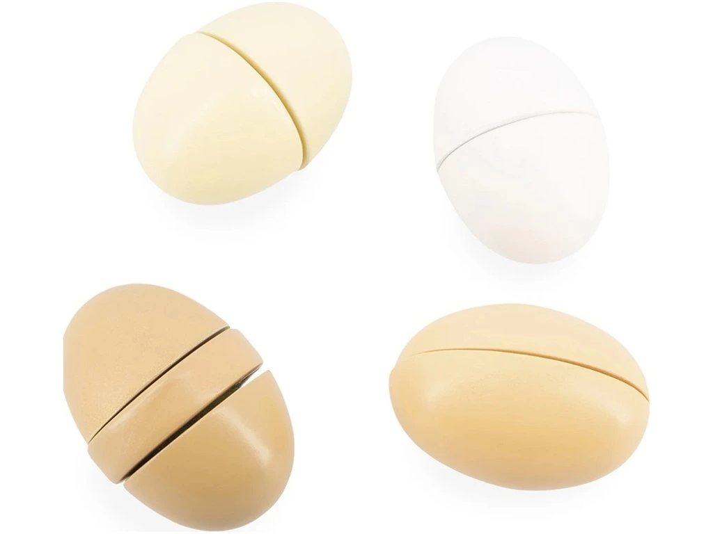 Vajíčka jsou rozdělena na poloviny a spojena magnetem, díky čemuž si děti mohou procvičovat jemnou motoriku, koordinaci oko-ruka a zároveň rozvíjet svou představivost při vaření, pečení a hraní si na domácnost. Kreativní hra podporuje samostatnost, sociální dovednosti a rozvoj fantazie.