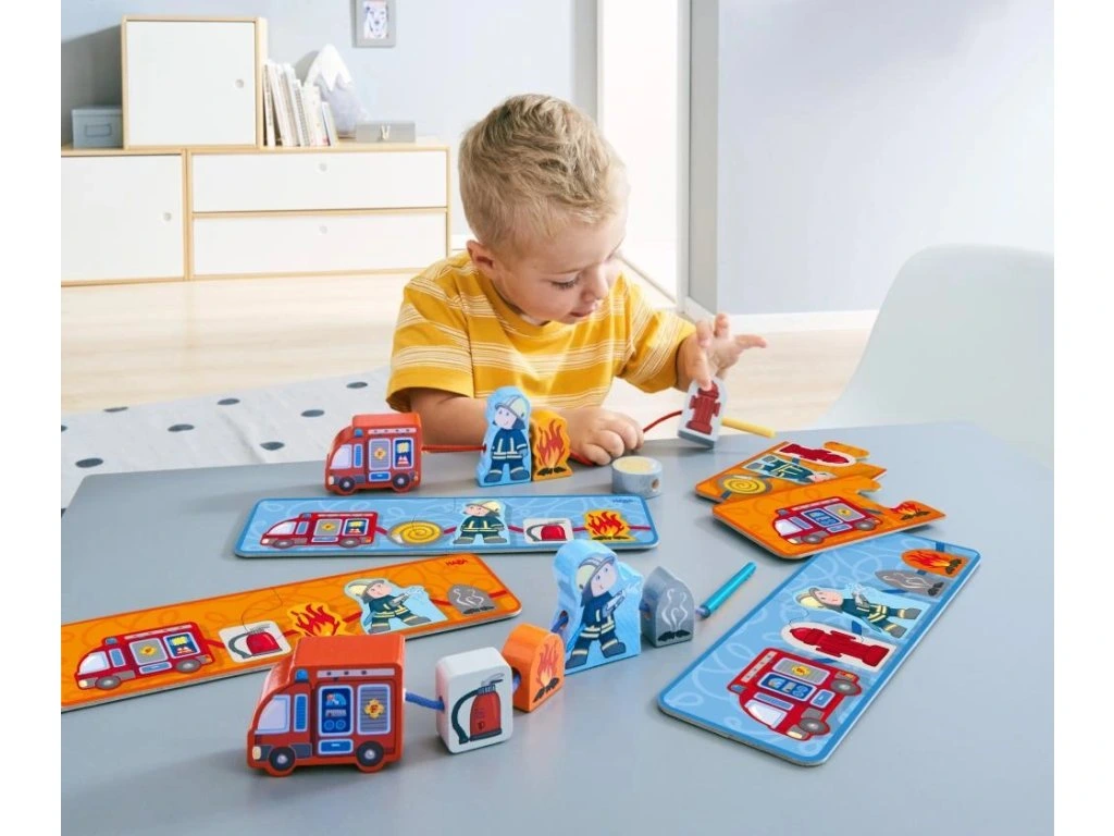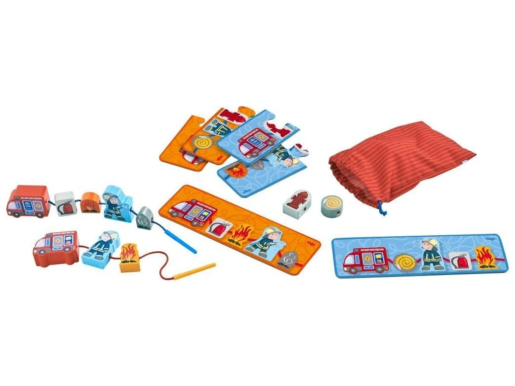 Navlékací figurky – hasičiVeselá zábava s navlékáním pro malé fandy hasičů! Tyto navlékací figurky jsou ideální na volnou hru doma i na cestách, podporují jemnou motoriku, koordinaci oko-ruka a rozvíjejí fantazii dětí. Malé ručičky si při hře procvičí trpělivost a přesnost při navlékání figurek.