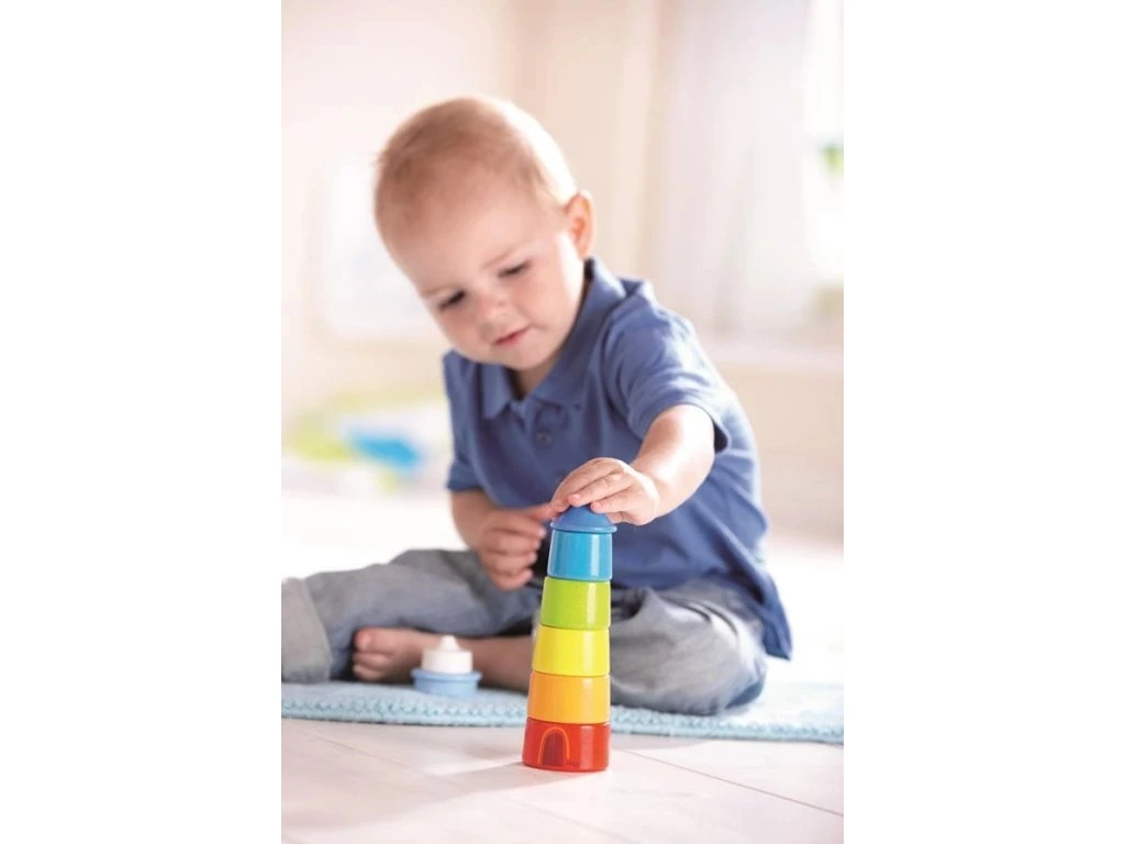 Dřevěný stohovací maják – barevná zábavaBarevný stohovací maják přináší dětem nekonečné hodiny zábavy a podporuje rozvoj jemné motoriky, koordinace a představivosti. Stohováním jednotlivých dílků se děti učí chápat velikost, pořadí a prostorové uspořádání.