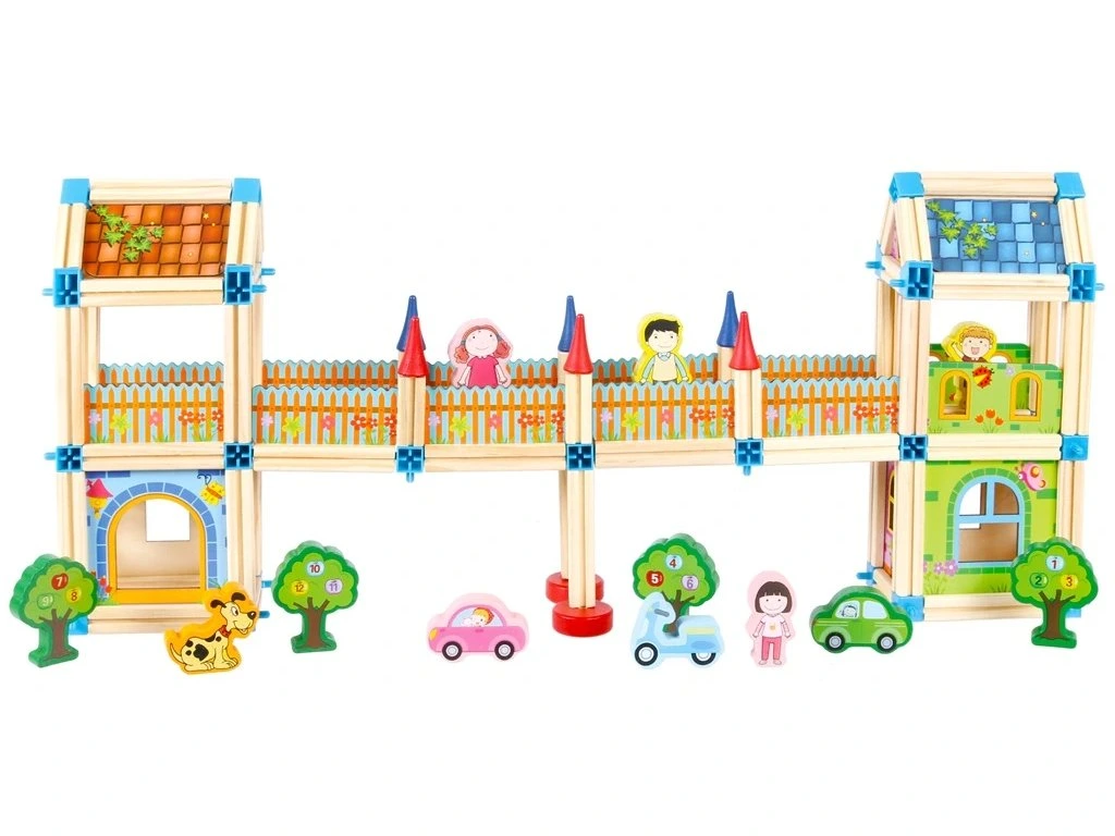 S touto barevnou stavebnicou se fantazii meze nekladou! Souprava obsahuje 268 dílků ze dřeva a plastových spojů, díky kterým je možné postavit cokoliv – domy, hrady, paláce a mnoho dalšího podle vlastní představivosti.