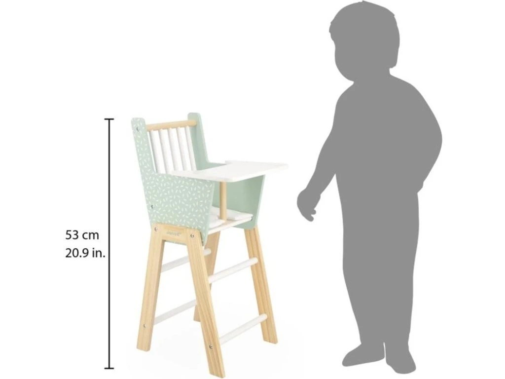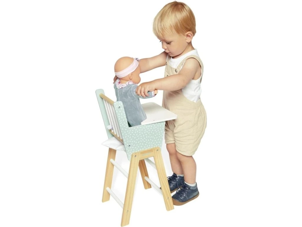 Vysoká židlička pro panenky – pohodlné krmení a hraníVečeře je na stole! Tato krásná vysoká židlička je ideální na krmení a péči o vaši oblíbenou panenku. Díky přiloženému polštářku je hraní pohodlné a realistické. Židlička je kompatibilní s panenkami do 42 cm (panenka se prodává samostatně).
