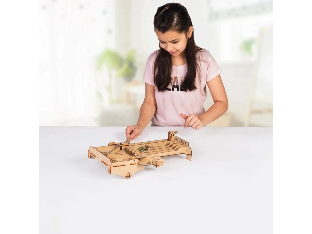 Tato dřevěná konstrukční souprava je zábavná vzdělávací hračka pro děti od 6 let, která potrápí jejich technickou představivost při sestavování modelu, ale zároveň pomůže porozumět základním vědeckým a technickým principům, se kterými se setkají ve škole nebo v budoucí kariéře. Na sestavení není potřeba lepidlo ani speciální nářadí. Jednotlivé dílky jsou vyřezané s velkou přesností pomocí laseru. Vše tak při sestavení do sebe jednoduše zapadá. Stavebnice je vyrobena z ekologického udržitelného dřeva. Souprava obsahuje srozumitelný návod s obrázky a slovenským překladem. Návod pomůže dětem bez problémů porozumět každému kroku při sestavení modelu. V naší sekci video najdete i video návod, který vás provede celým procesem sestavení.