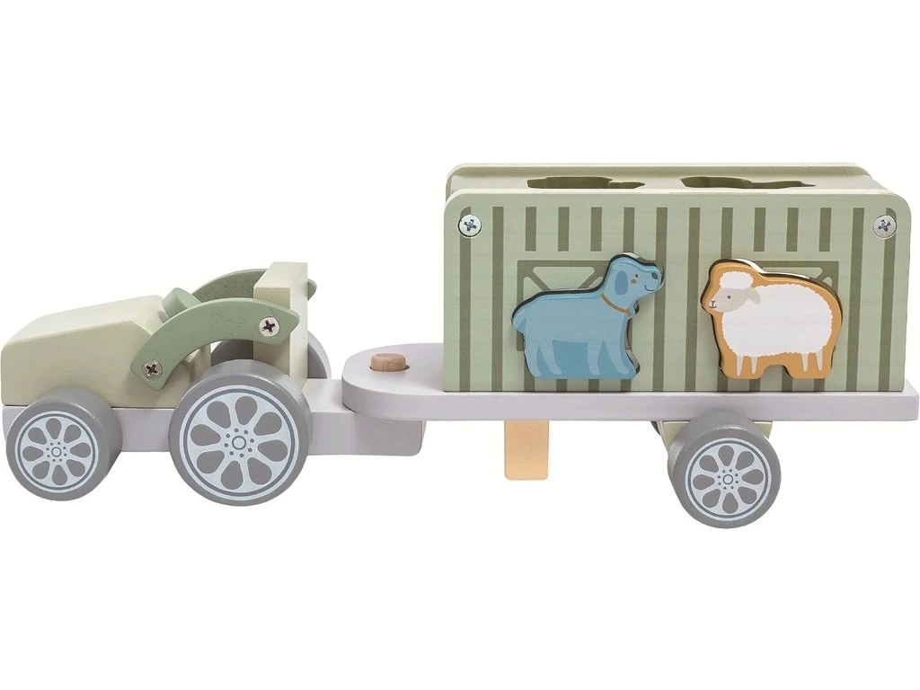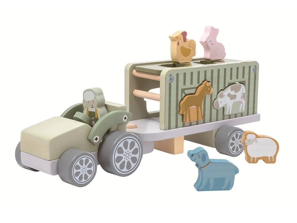 Když řídí ovečka, o zábavu je postaráno! Dřevěné auto s vlečkou je ideální pro malé dětské ručičky a přináší množství možností na hru a objevování.