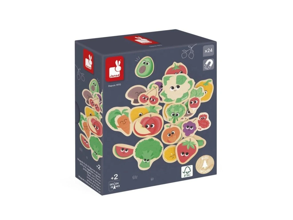 Dřevěné magnetky pro děti Ovoce a zelenina 24 ks