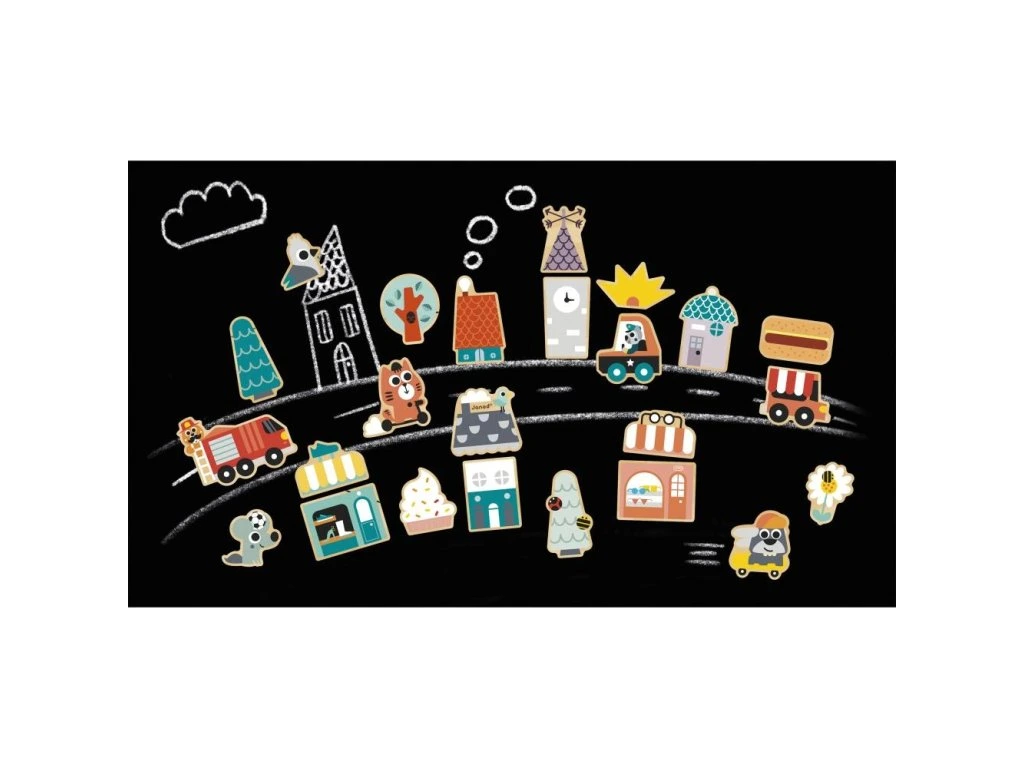 Tato dřevěná magnetická stavební sada nabízí dětem skvělou příležitost vybudovat si své vlastní město a mít u toho spoustu zábavy. Obsahuje 24 dřevěných magnetů, které se přilepí na magnetické tabule nebo jakýkoliv jiný magnetický povrch.Zde je několik důležitých přínosů této hračky: