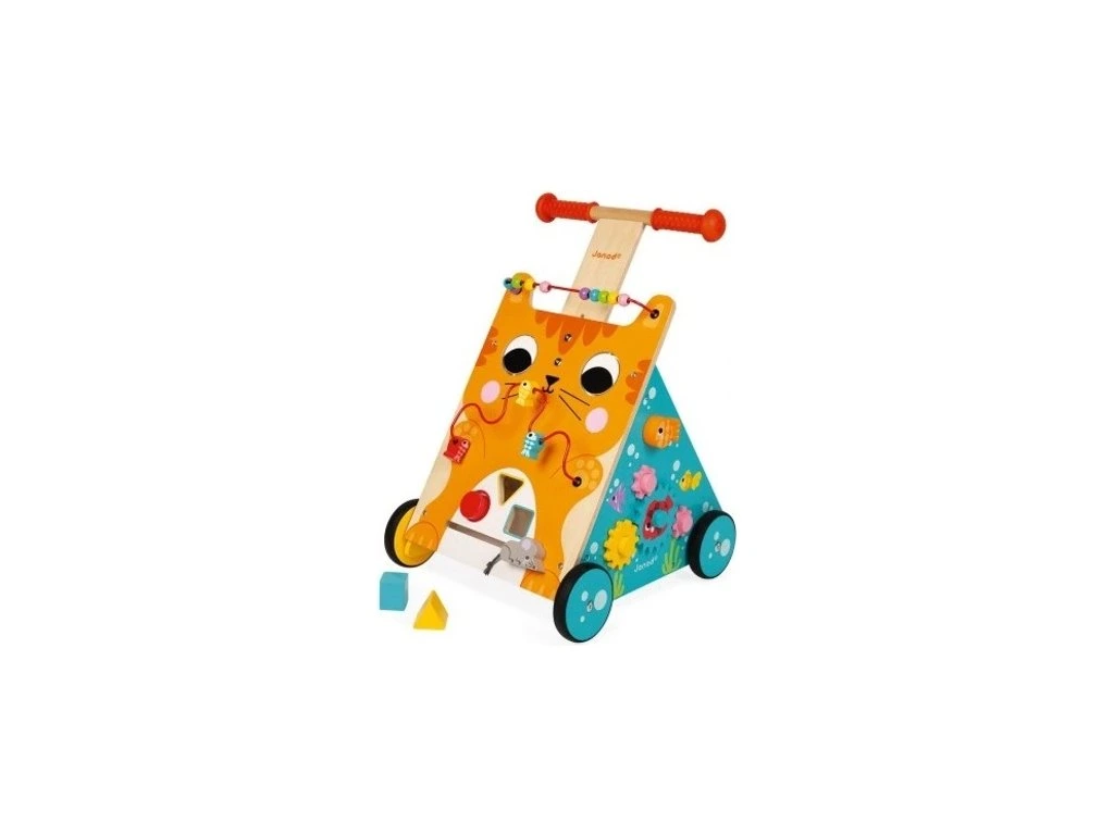 Atraktivní víceúčelové dřevěné chodítko a motorická hračka zároveň je ideální na podporu učení se chodit. Díky výškově nastavitelné rukojeti (47 až 53 cm) se chodítko přizpůsobuje velikosti vašeho dítěte. Obsahuje neviditelnou a odnímatelnou brzdu, kterou můžete zablokovat kolečka a postupně je uvolňovat podle zručností dítěte. Kromě podpory chození rozvíjí jemné motorické dovednosti a obratnost pomocí zábavných aktivit přímo na chodítku.