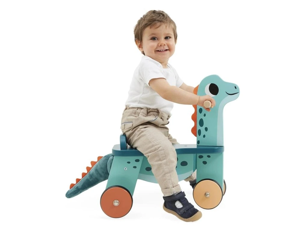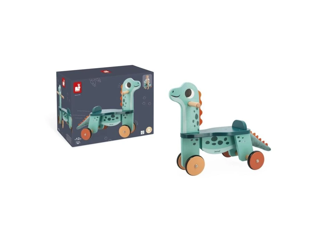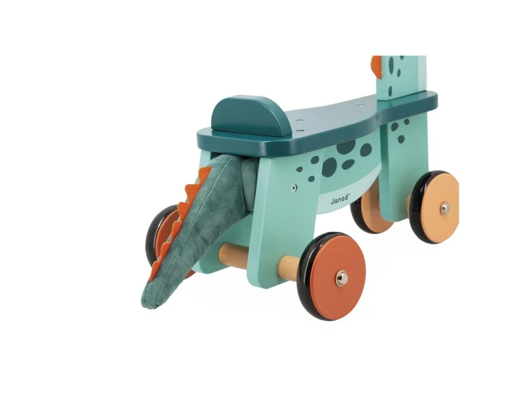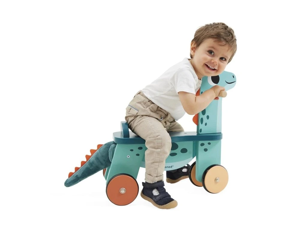 Pozor na blížícího se Portosaura! Vydejte se na dlouhé jízdy na tomto nádherném brachiosaurovi. Toto odrážedlo je vpředu vybavené dvěma směrovými kolečky pro usnadnění otáčení všech druhů. Kolečka jsou vybavená silikonem, aby se mohla tiše plazit lesem. Ocas dinosaura je vyrobený z plyše a dodává hračce nádech jemnosti. Ocas je připevněn systémem suchého zipu, což usnadňuje čištění (možné ručně prát na 30°C). Vaše dítě bude moci podnikat dobrodružství a zároveň si rozvíjet motorické dovednosti a rovnováhu.