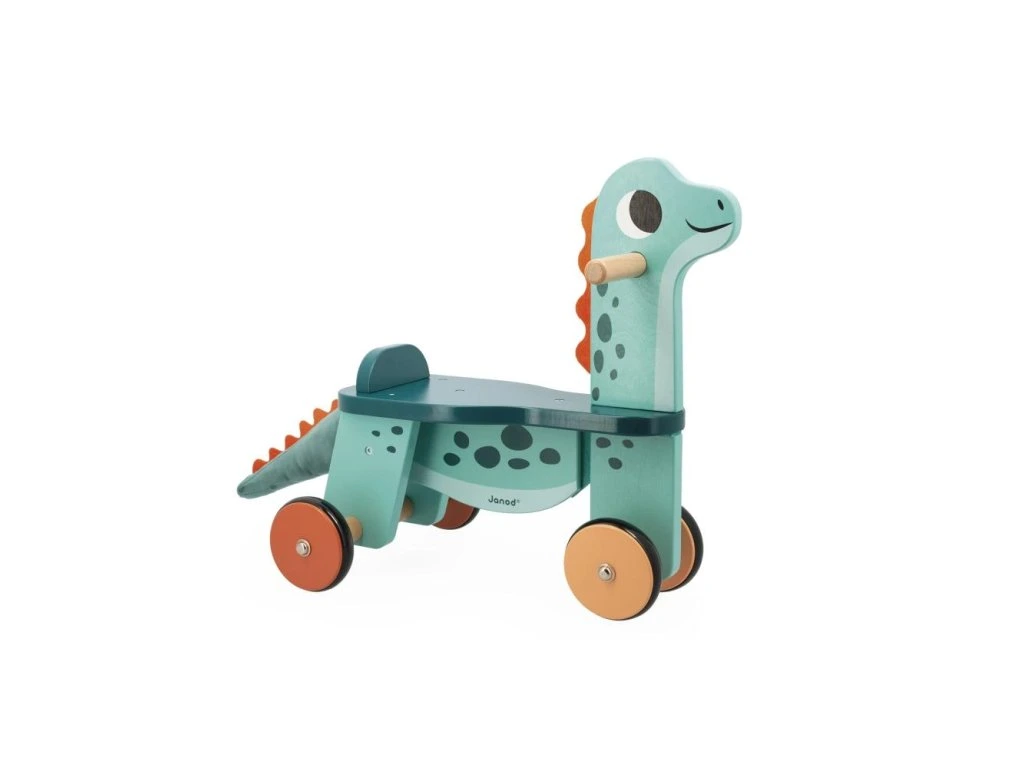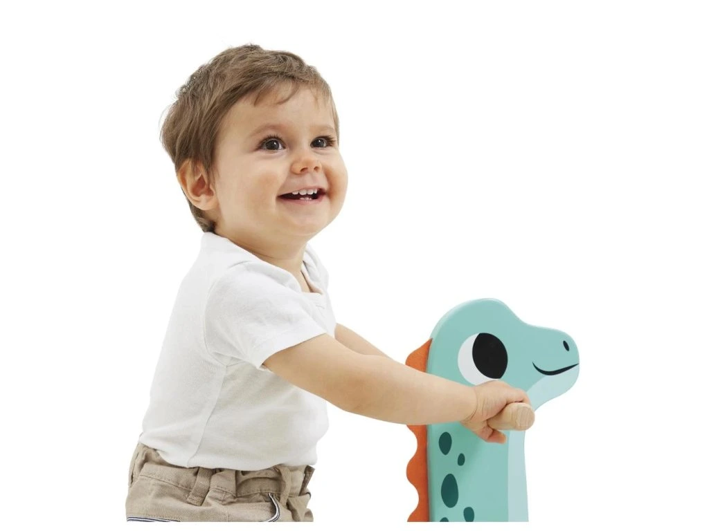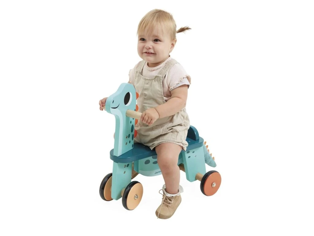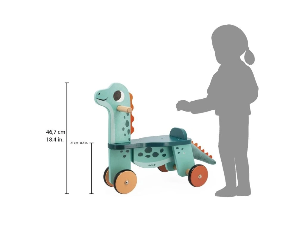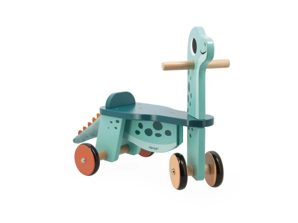 Pozor na blížícího se Portosaura! Vydejte se na dlouhé jízdy na tomto nádherném brachiosaurovi. Toto odrážedlo je vpředu vybavené dvěma směrovými kolečky pro usnadnění otáčení všech druhů. Kolečka jsou vybavená silikonem, aby se mohla tiše plazit lesem. Ocas dinosaura je vyrobený z plyše a dodává hračce nádech jemnosti. Ocas je připevněn systémem suchého zipu, což usnadňuje čištění (možné ručně prát na 30°C). Vaše dítě bude moci podnikat dobrodružství a zároveň si rozvíjet motorické dovednosti a rovnováhu.