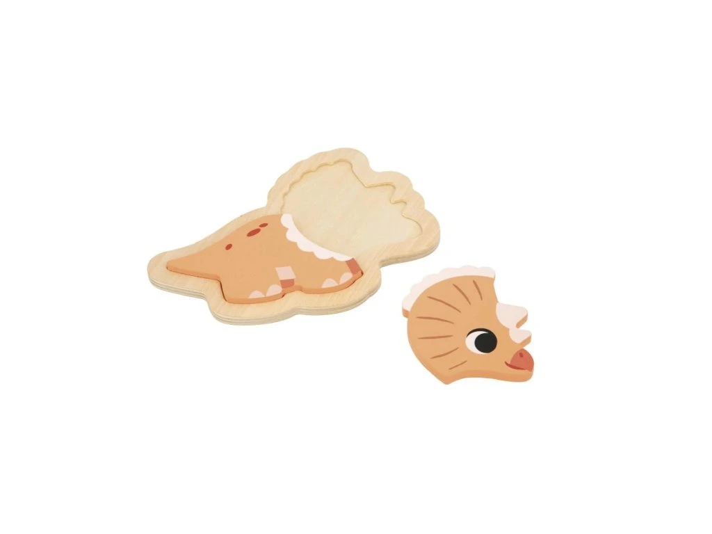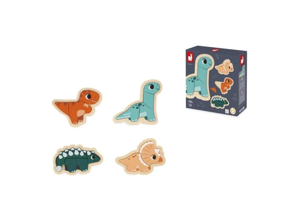 Dva kusy, tři kusy, čtyři kusy... a pět! Tato skvělá sada se skládá ze 4 rostoucích puzzle představujících 2-dílného Triceratopse, 3-dílného T-Rexe, 4-dílného Diplodoca a 5-dílného Ankylosauruse. Prostřednictvím motivu dinosaurů bude mít vaše dítě za úkol poskládat obrázky, jejichž náročnost se zvyšuje.Hra se skládá ze 4 dřevěných puzzle a 4 podstavců pro jednoduché složení. Ideální hra na rozvoj motoriky a obratnosti rukou u dětí.