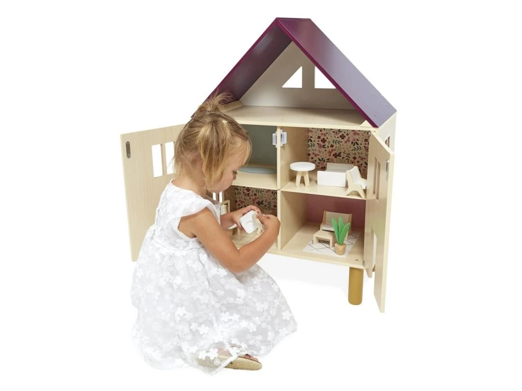 Domeček má magnetické dveře, které se dokořán otevírají na hraní a pak se zavírají, aby se všechno uvnitř uložilo pro snadnou přepravu. Hodiny her a sdílení, které vašemu dítěti umožní rozvíjet představivost a schopnost socializace.