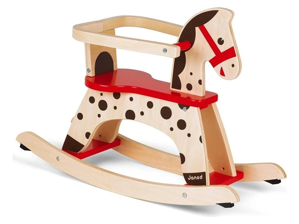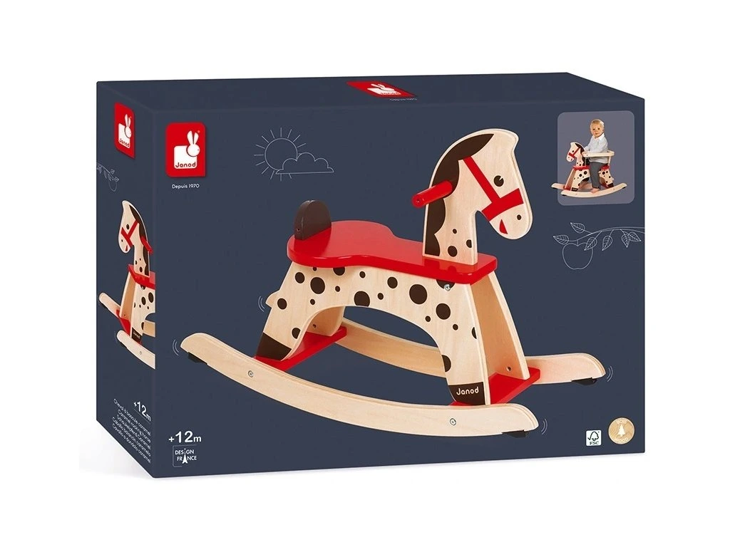 Dítě se může pohodlně přidržovat držadla na hlavě koníka, zatímco dřevěná ohrádka zajišťuje bezpečné hraní. Nový a bezpečný design spolu s ideální velikostí činí z této hračky skvělou volbu na rozvoj rovnováhy a koordinace.