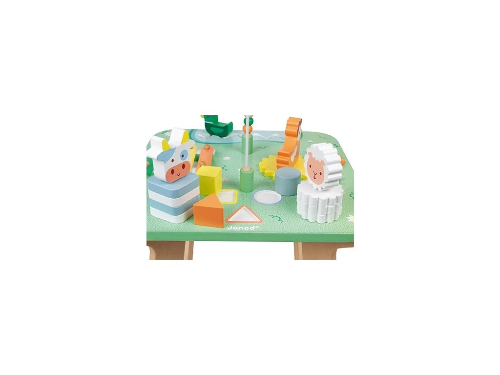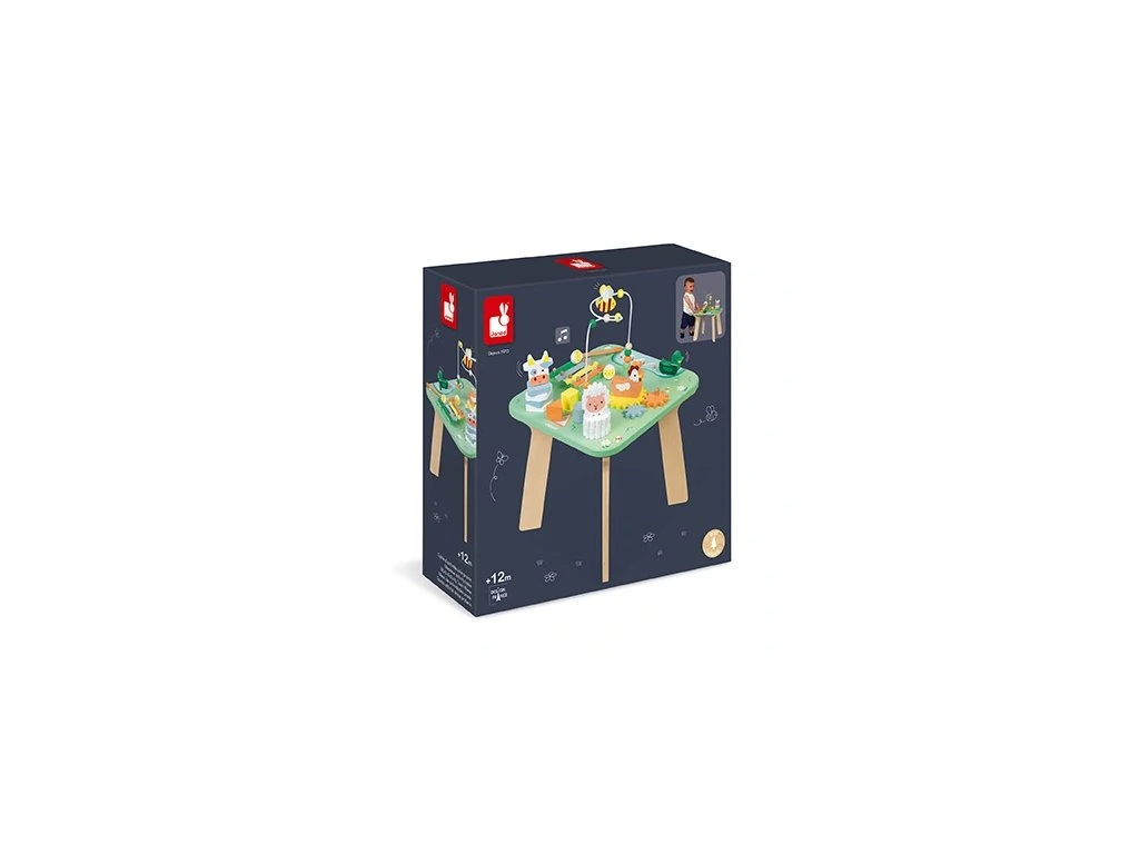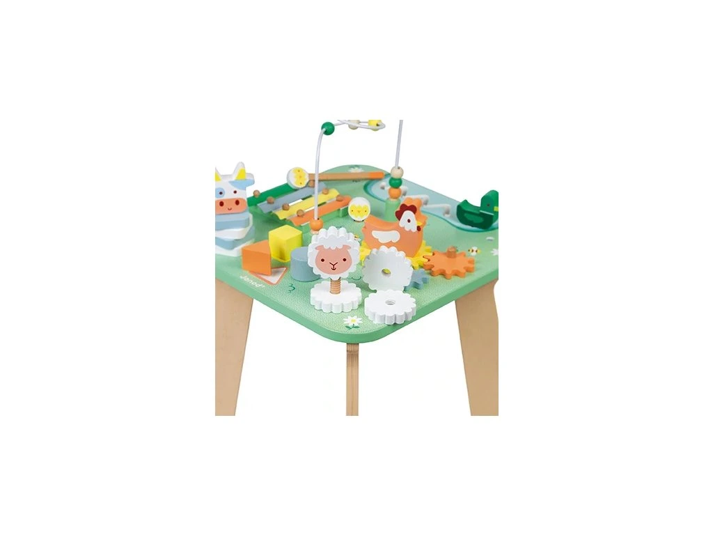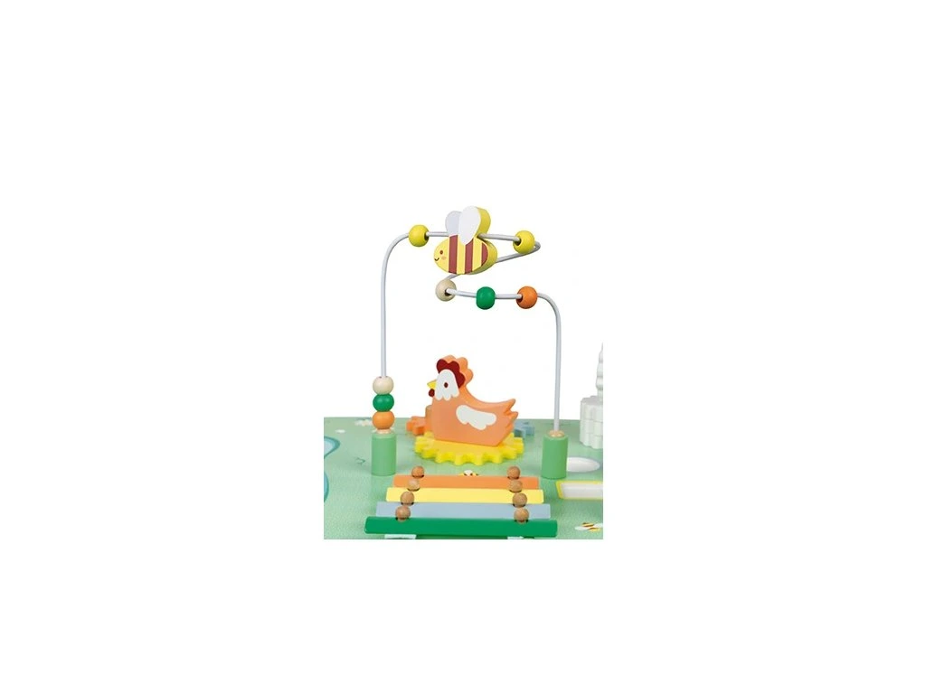 Vydejte se na venkov a na pole plné krásných květů s tímto multifunkčním stolkem, který obsahuje všechna oblíbená hospodářská zvířátka!Pojďme tedy do toho a pomožme vašemu dítěti objevit 7 aktivit na tomto úžasném motorickém stolku včetně: 2 zvířátek, která je možné skládat dvěma různými způsoby na rozvoj motorických schopností, bludiště s kachničkou procházející kolem rybníčku, což je určené na posílení koordinace oko ruka, dítě může otáčet ozubená kolečka, vkládat 3 vkládací kostky a poznávat tvary, dále je tu smyčkový hlavolam na rozvoj koncentrace a kovový xylofon se 2 paličkami na rozvoj hudebního talentu dítěte!