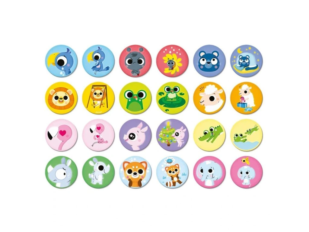 - 24 barevných žetonů s motivem zvířátek