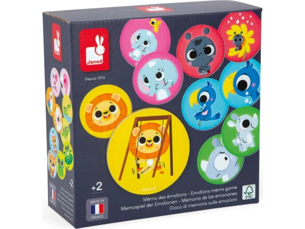 Každý pár žetonů obsahuje jeden s detailní ilustrací emocí a druhý, který ji uvádí do kontextu. Hra podporuje rozvoj myšlení, pozorovacích schopností a emocionální inteligence dětí.