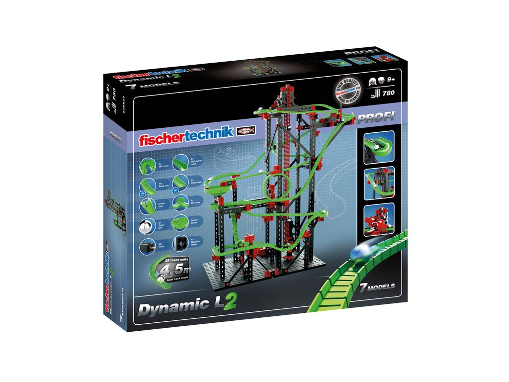 Sada Dynamic L2 zaručuje velkou zábavu s třemi akčními 180 ° zatáčkami. Čtyři vysokorychlostní ohebné kolejnice se zvýšenou boční hranou umožňují, aby se kulky valily plnou rychlostí přes zatáčky! Koule frčí mechanickými křižovatky do různých drah, směrem k otočnému nálevce nebo přes mechanismus / počítadlo, které vystřelí znovu kouli poté jak ji zastaví. 180 ° dráha ti umožní dostatečnou dráhu, aby si mohl změnit směr míče v ľubovonom prostoru. Po ujetí smyčkami a jinými překážkami se míč nakonec vrátí do čekací stanice výtahu. Koule se pak přivedou zpět na vrchol pomocí výtahu, který je ovládán motorem XS. Tři různé akční hřiště s délkou až 4,50 m nabízejí neomezenou zábavu na překážkové dráze s míčem. Čtyři modely instruktážních experimentů nenápadně vysvětlují i účinky různých fyzikálních jevů (zrychlení, setrvačnost hmoty, rovnováha sil, zákon zachování energie, princip lineární hybnosti, pohybové zákony). Portál eLearning nabízí zajímavé informace o vzdělávacích aktivitách a videa související s fyzikou. Pojďme na to ...!