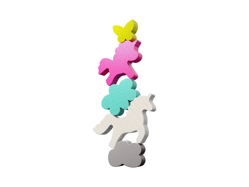 Dynamická zábavná hra Stacking Challenge Jednorožci 5 figurek 300 zadání