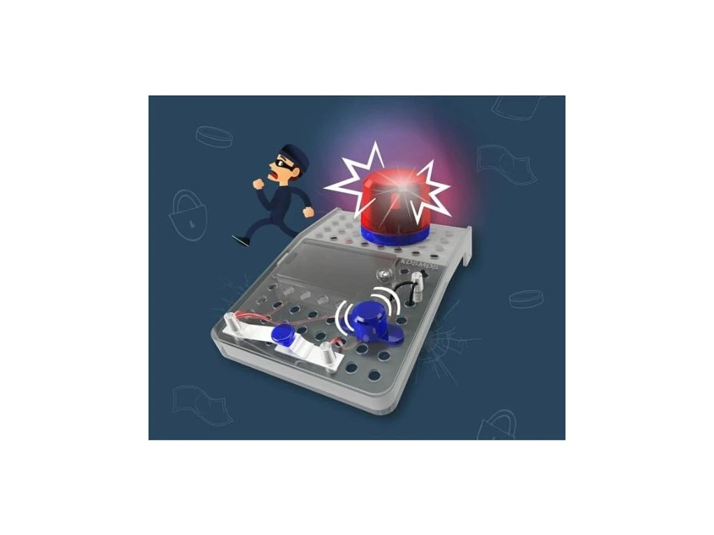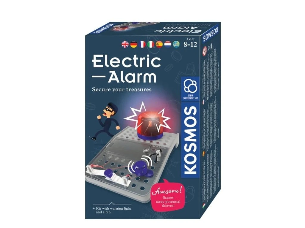 Elektronická stavebnice Elektrický alarm vyřeší spoustu otázek. Například - kdo ukradl gumové medvídky ze zásuvky? Tady je popírání zbytečné! S touto elektronickou stavebnicí od KOSMOS nemají zloději šanci. Děti ve věku od 8 do 12 let si mohou v jednoduchých krocích sestavit alarm na základní desce, včetně sirény a výstražného majáku. Děti si takto mohou zabezpečit tajné úkryty a další vetřelci už budou odhaleni!