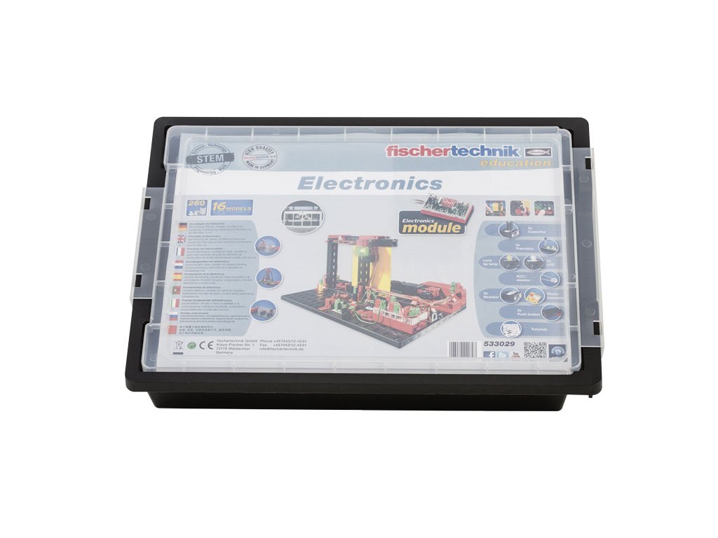 Jednoduché obvody, sériové a paralelní připojení, elektronické obvody s tranzistory, kondenzátory, rezistory a LED. Tato stavebnice učí krok za krokem základní principy elektroniky. Elektronický modul má řízení s 16 pevnými programy, 2 výstupy motoru, 3 analogové vstupy pro senzory a potenciometry na regulaci otáček motoru. S touto konstrukční soupravou lze sestavit mnoho fascinujících i funkčních modelů, od jednoduchého bleskového světla po vizuální pilu, střídavého blikače a regulovatelného větracího ventilátoru.